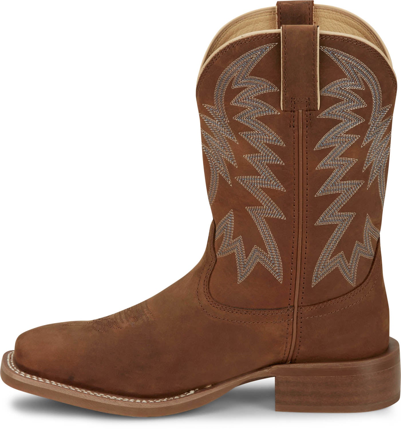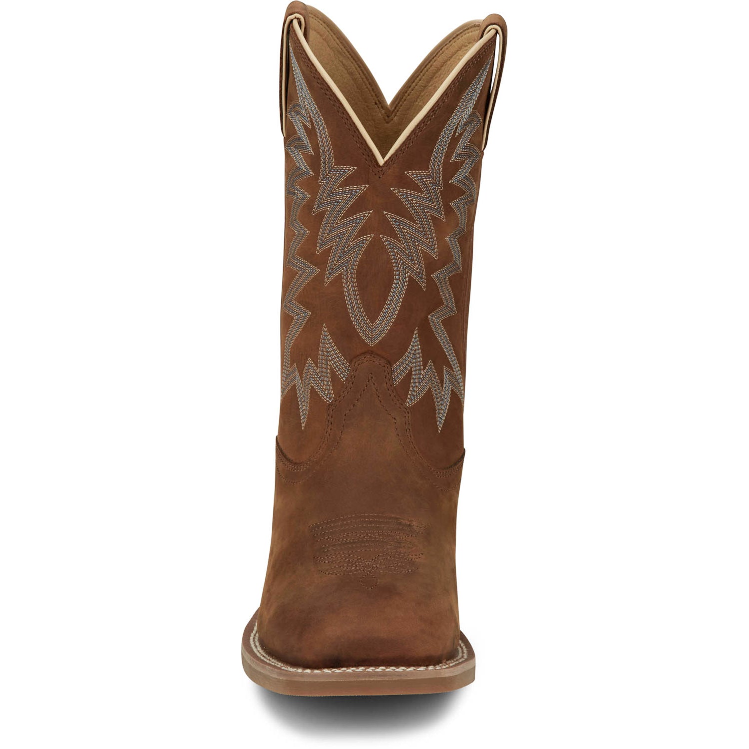 Justin Mens Big Bucks 11in Western Pecan Leather Frontier Cowboy Boots