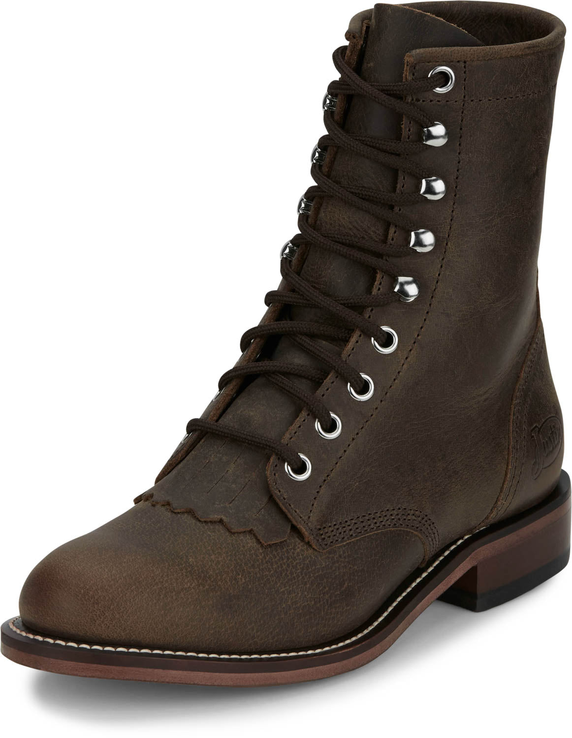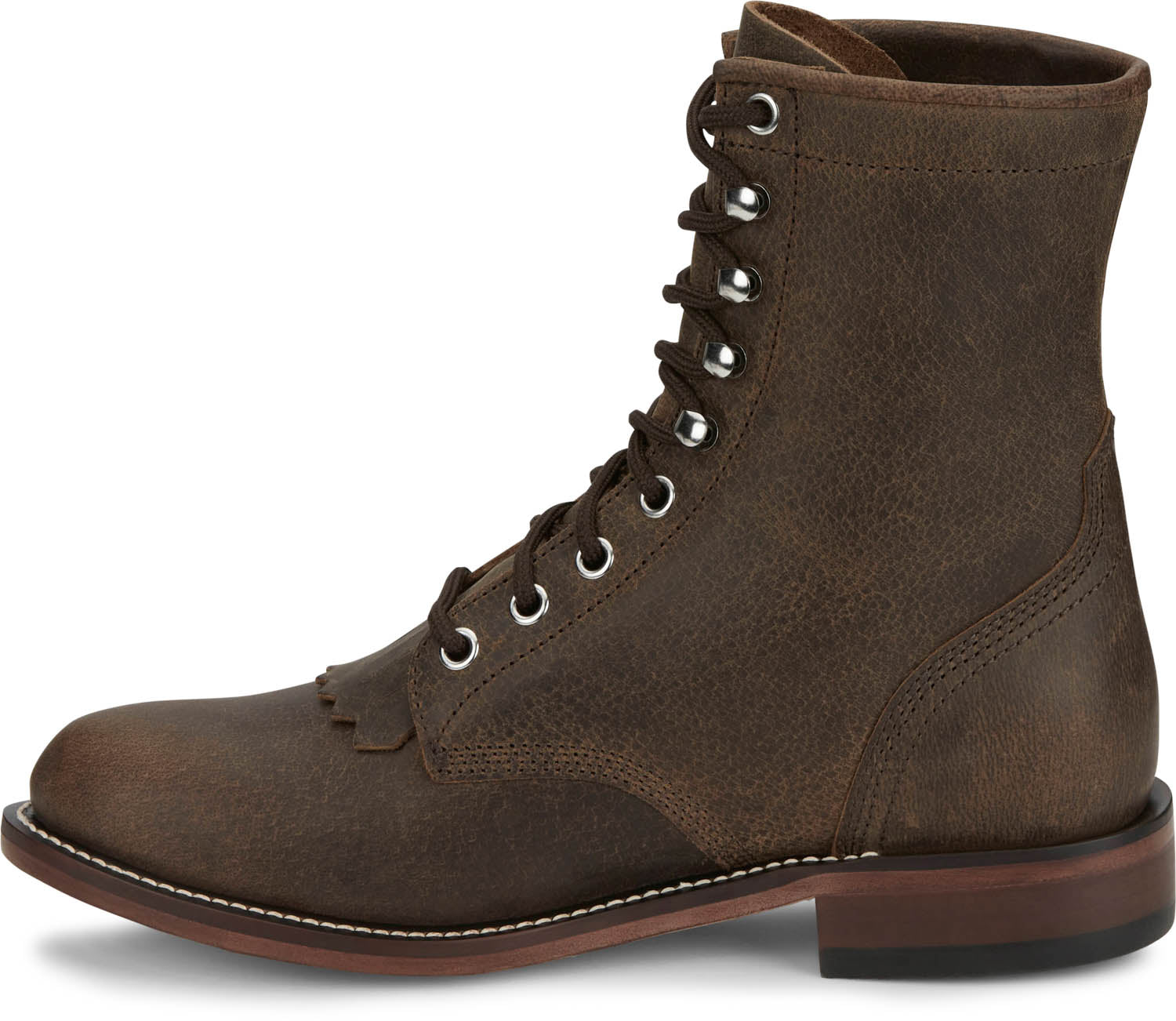 Justin Mens McKean 7in Lace-Up Roper Brown Leather Work Boots