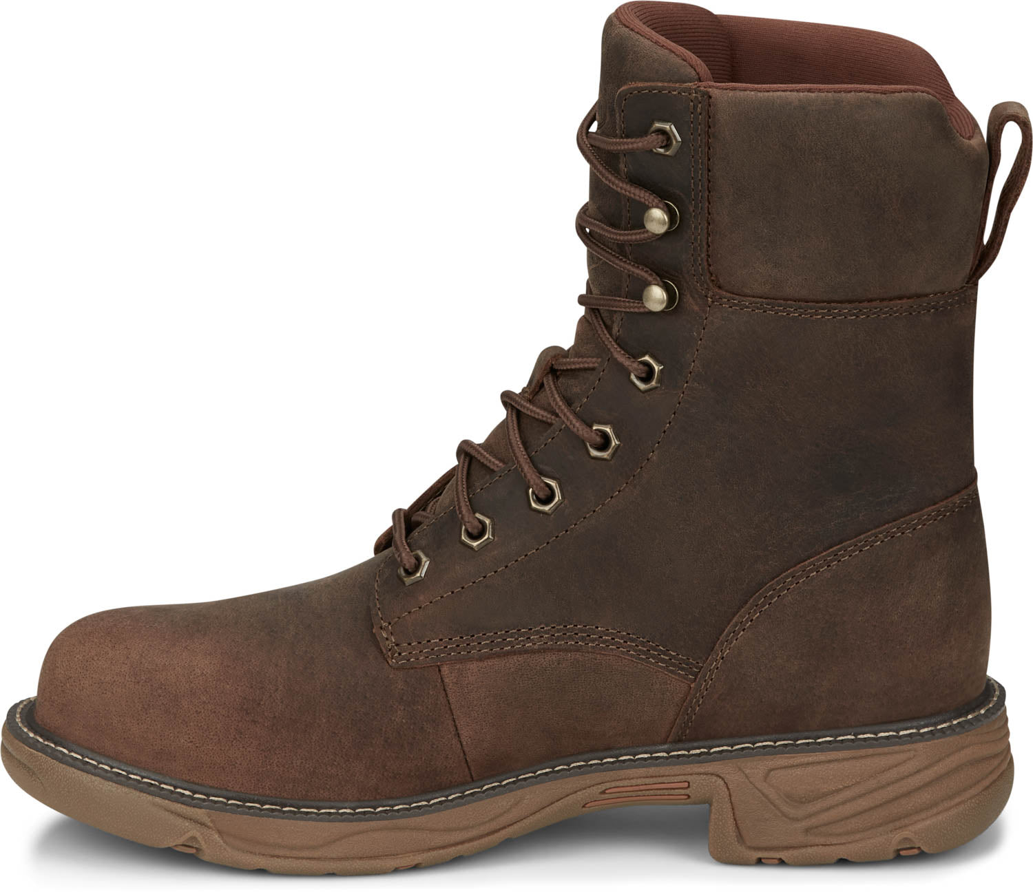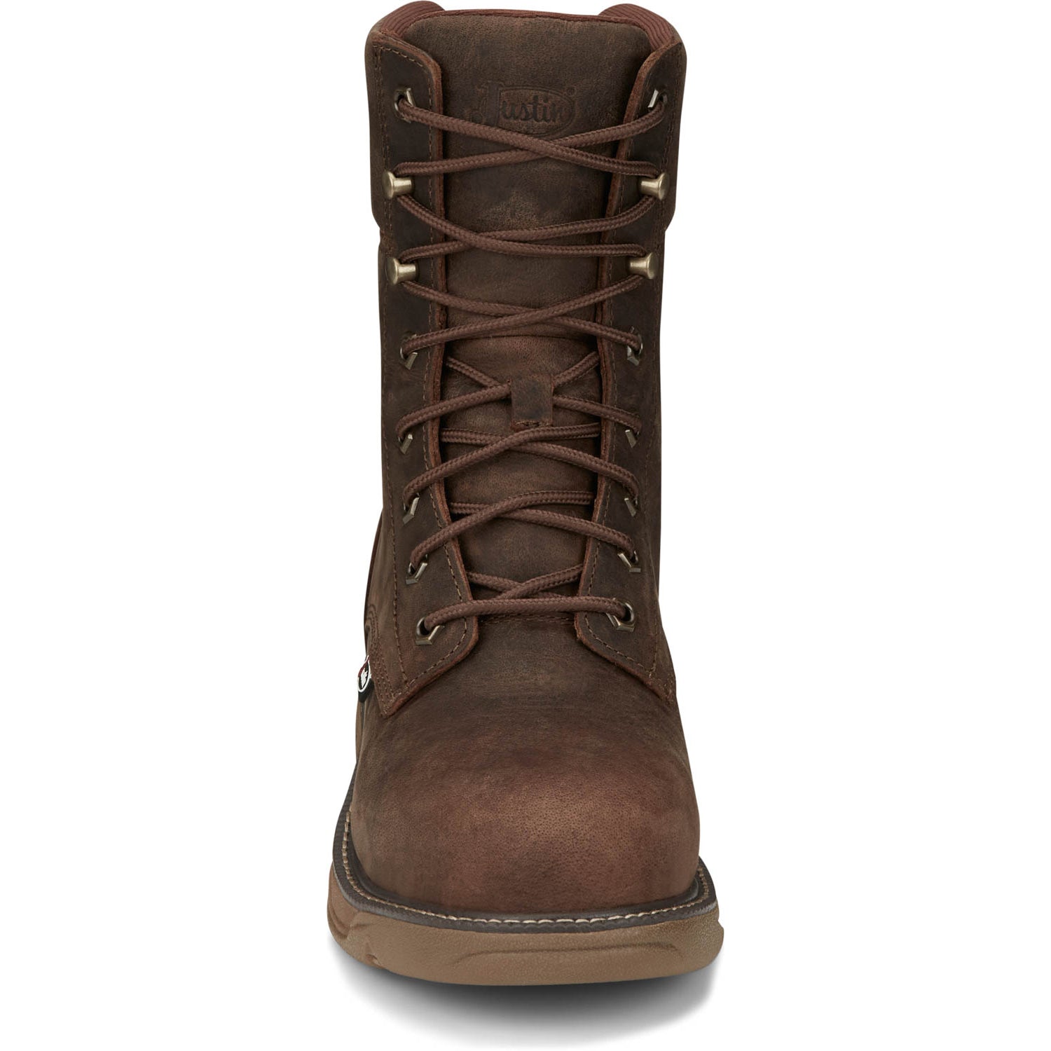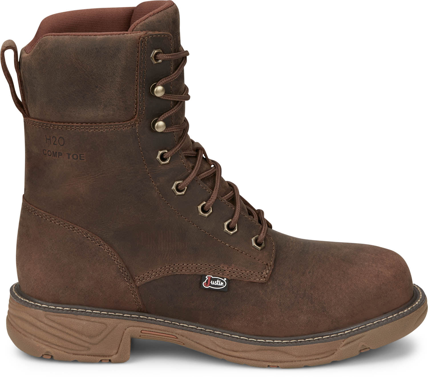 Justin Mens Rush 8in WP Comp Toe Pecan Leather Work Boots