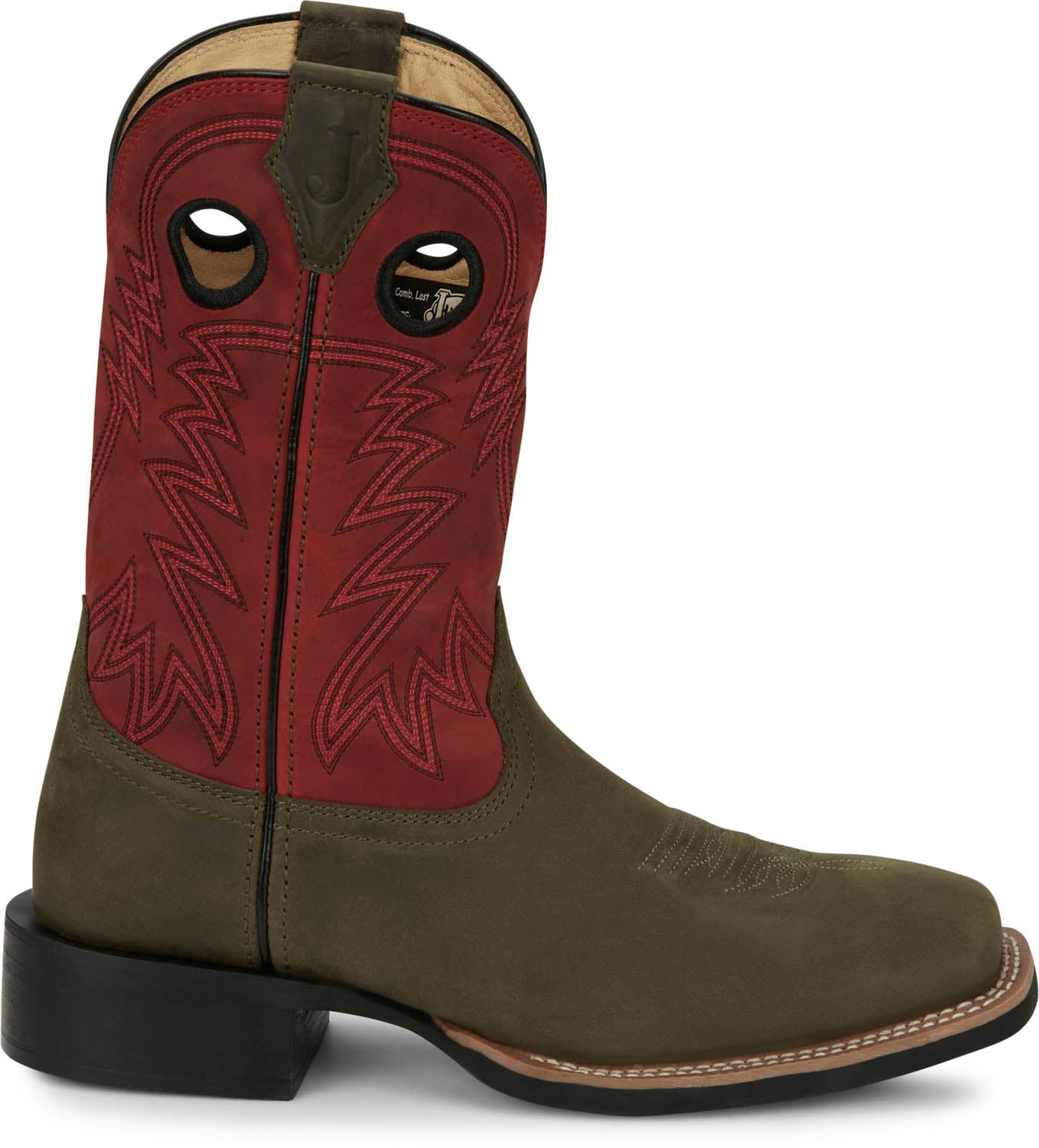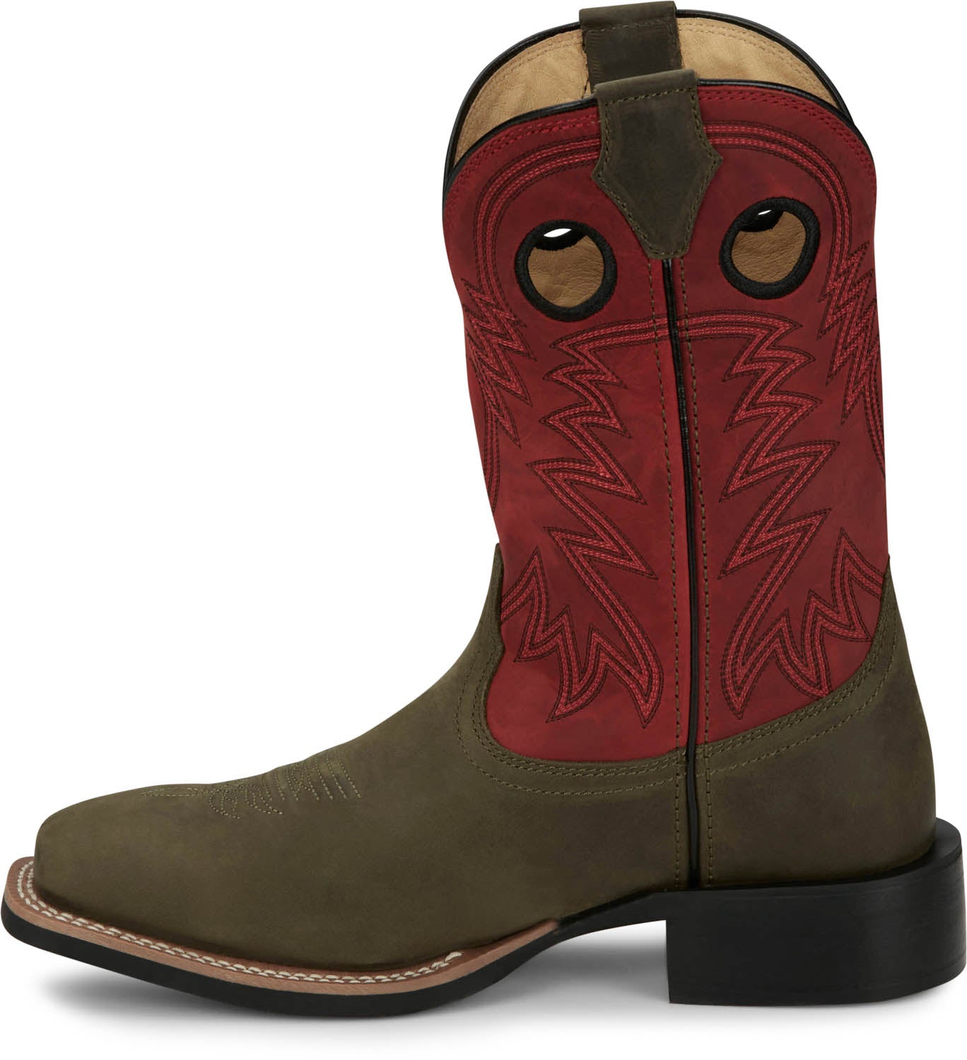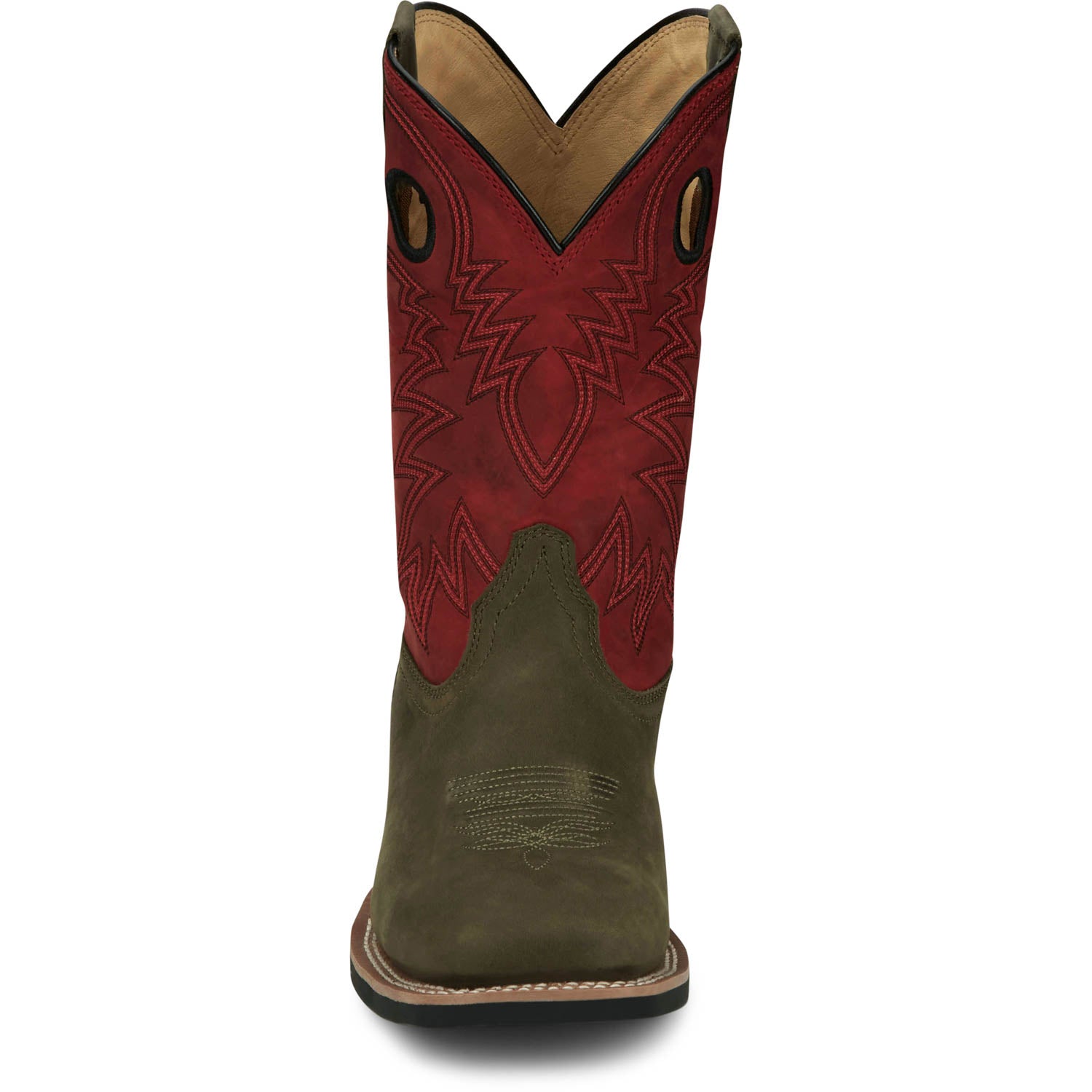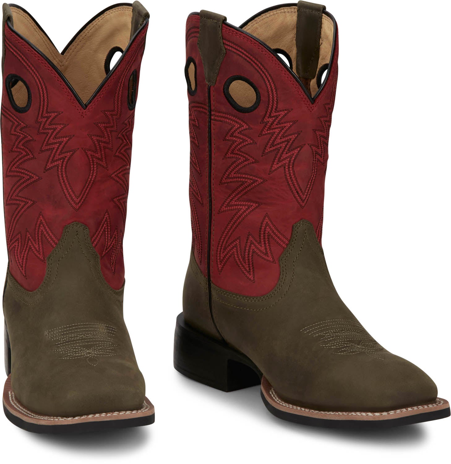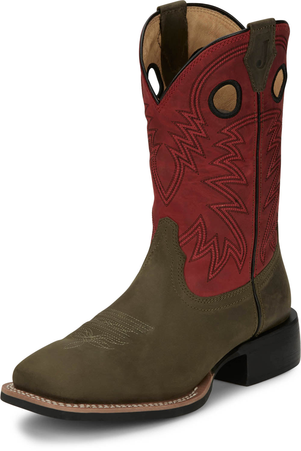 Justin Mens Show Stopper 11in Western Ash/Red Leather Frontier Cowboy Boots