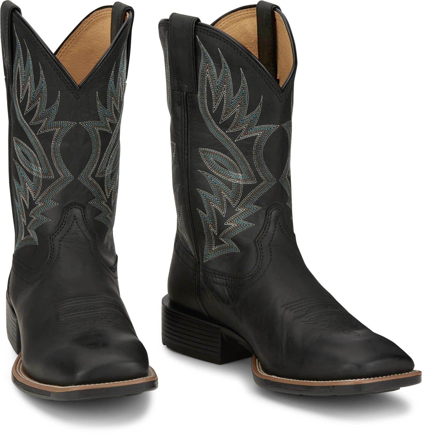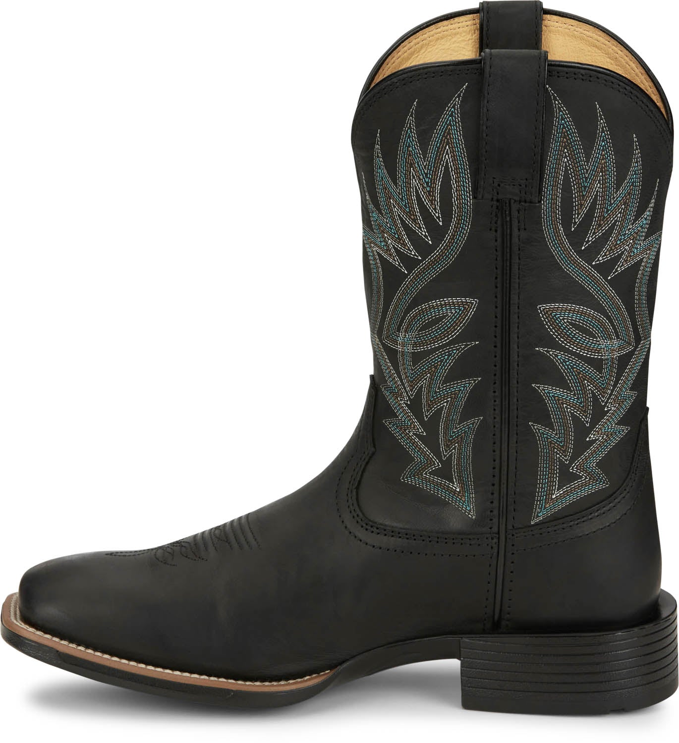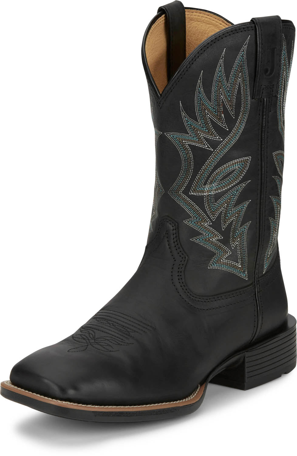 Justin Mens Zeke 11in Western Black Leather Cowboy Boots