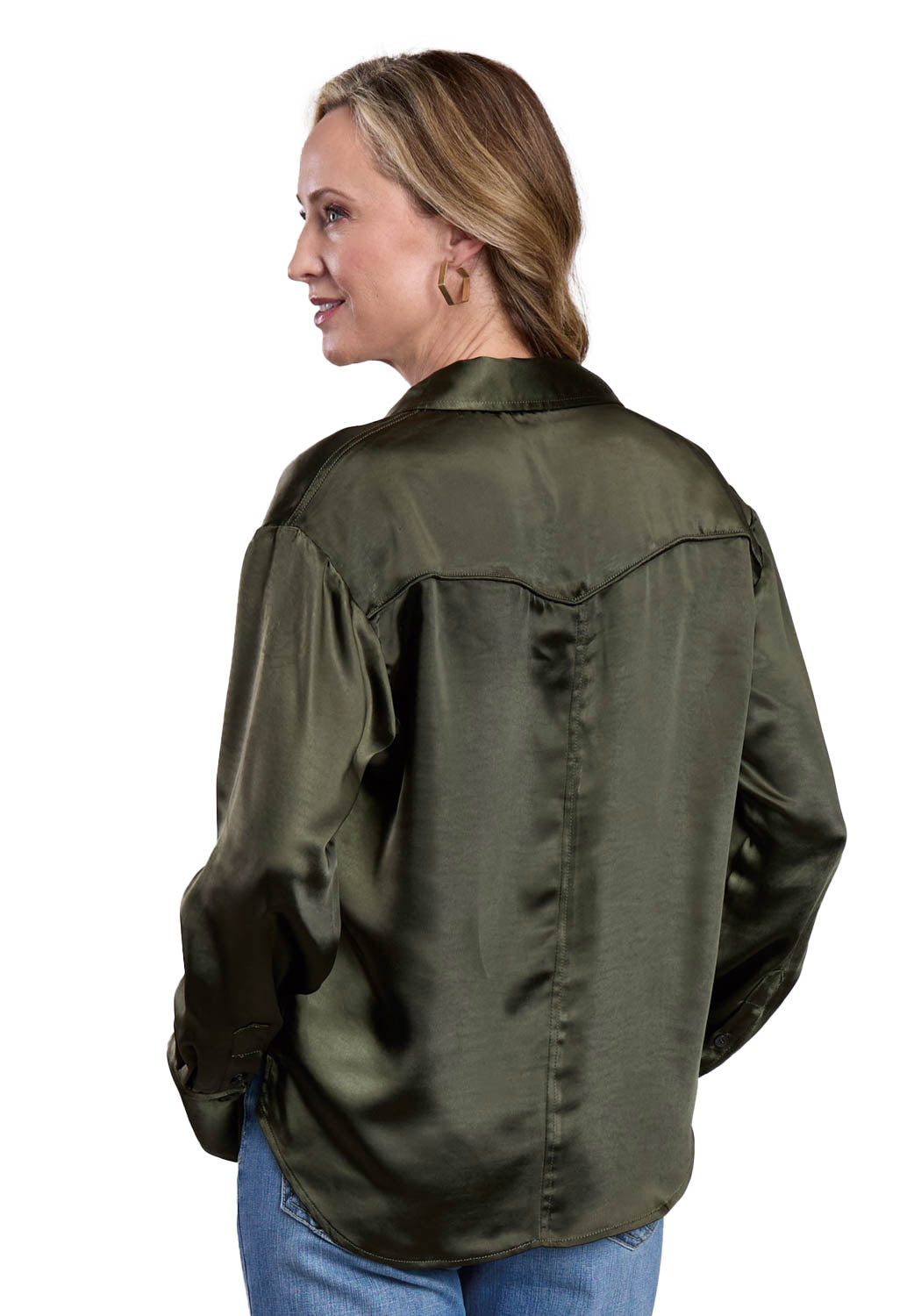 Stetson Womens Satin Collared Yoked Olive 100% Polyester L/S Blouse Stetson Womens Satin Collared Yoked Olive 100% Polyester L/S Blouse Stetson Womens Satin Collared Yoked Olive 100% Polyester L/S Blouse