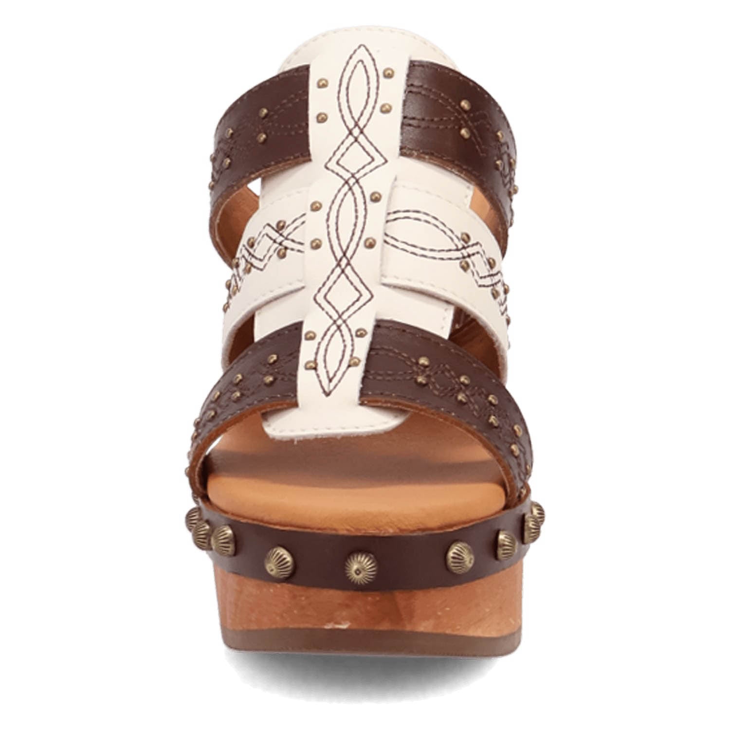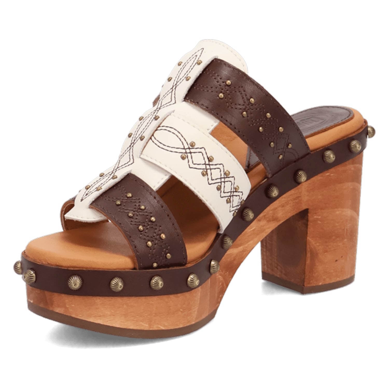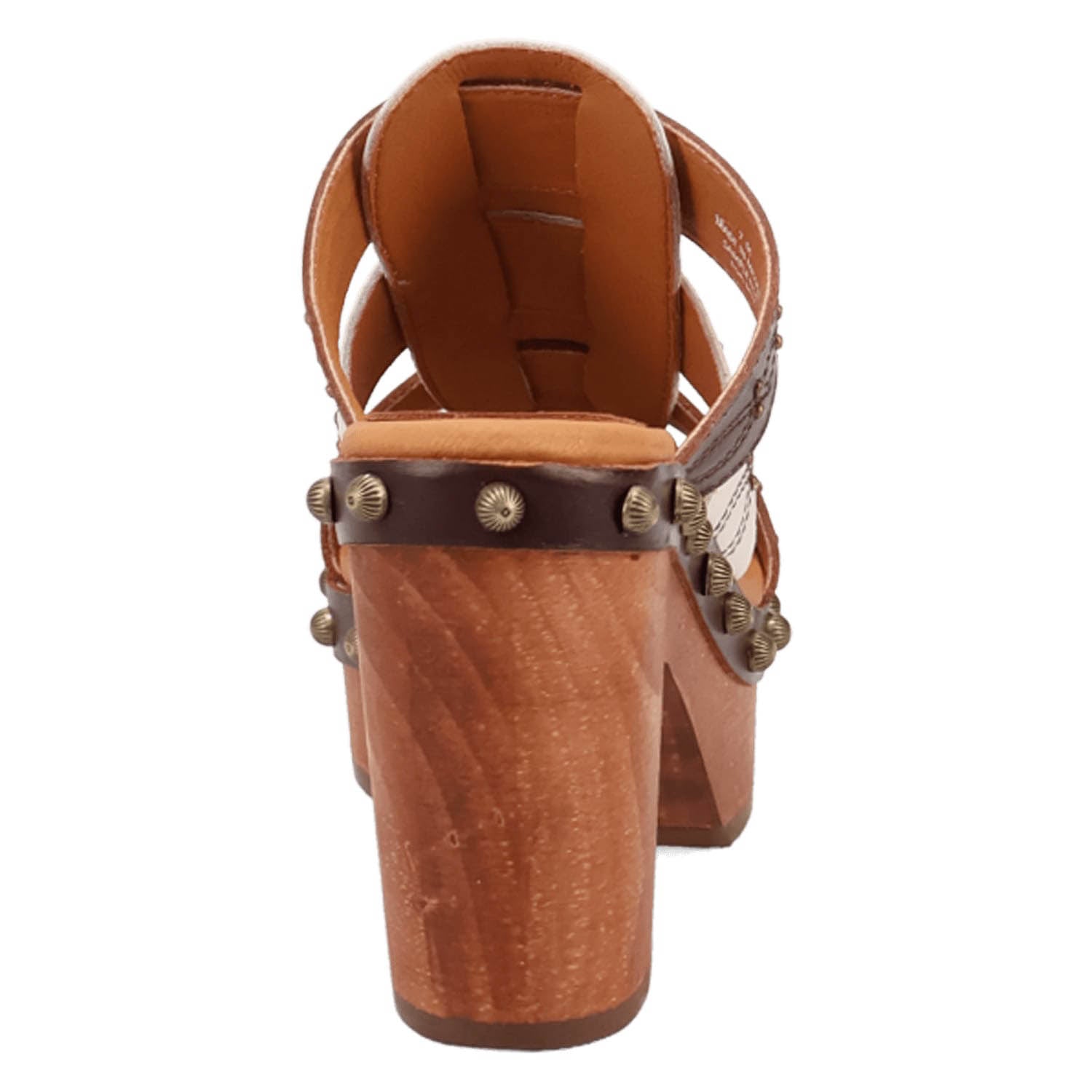 Dingo Womens Chateau Wooden Brown Leather Stud Sandals Shoes