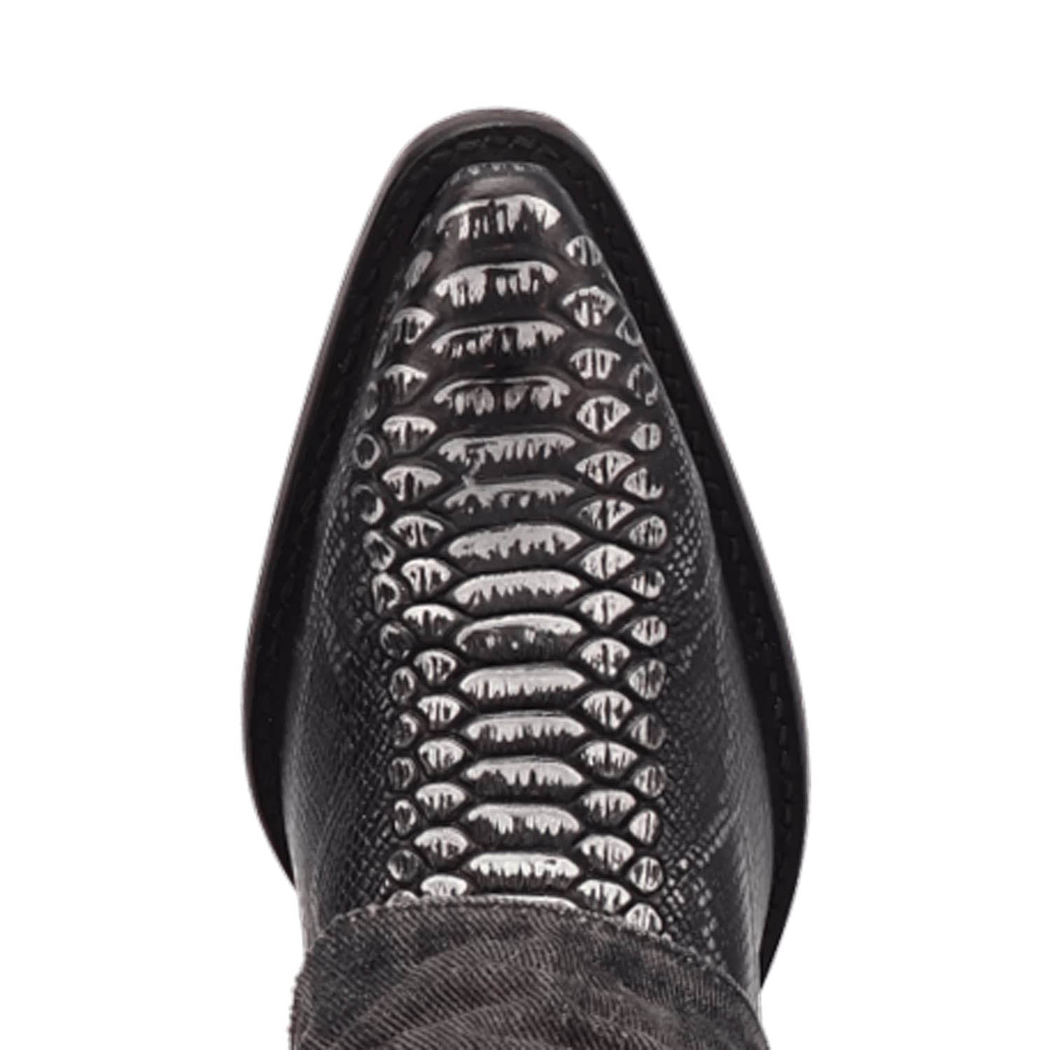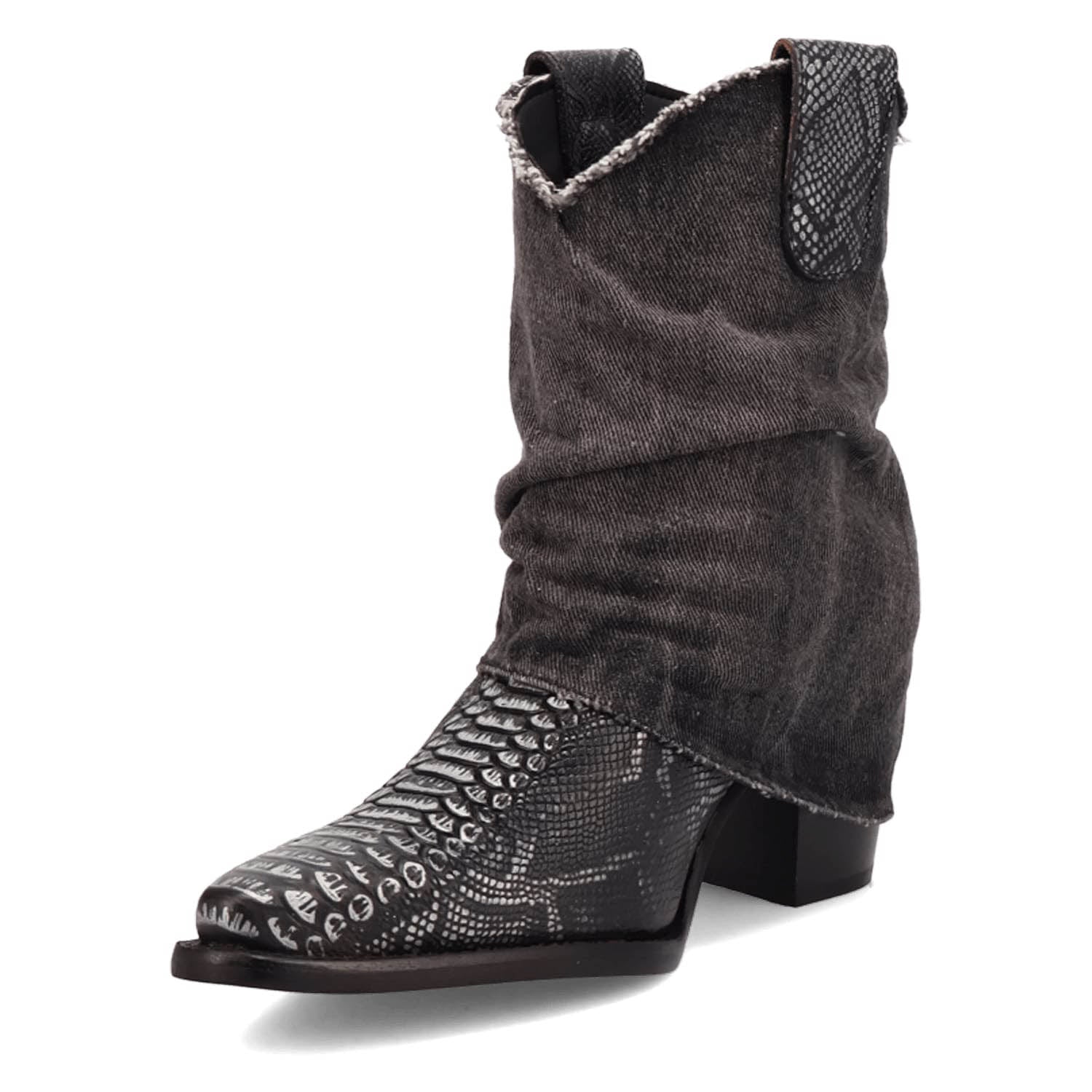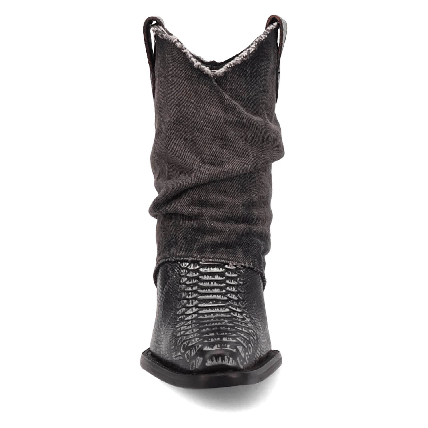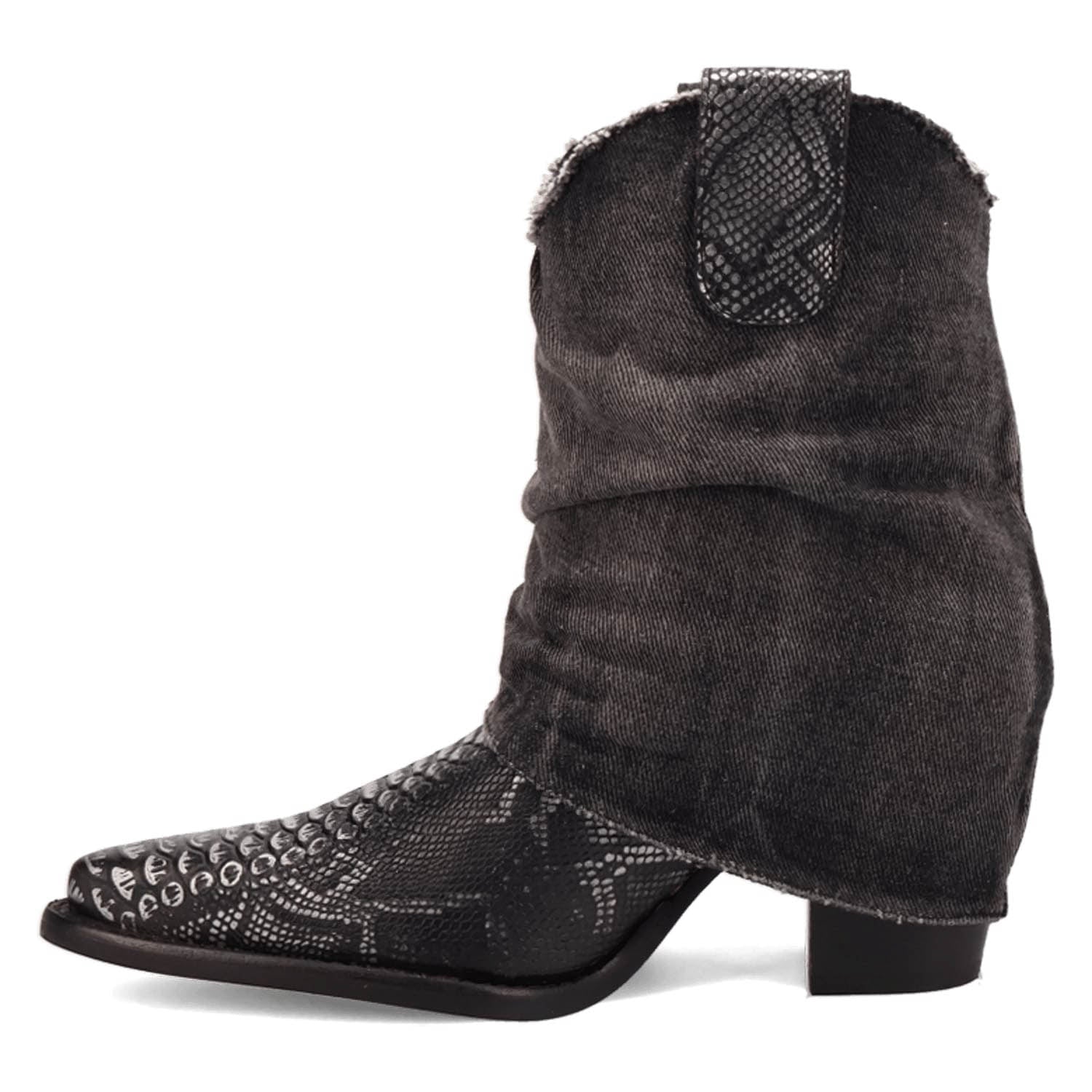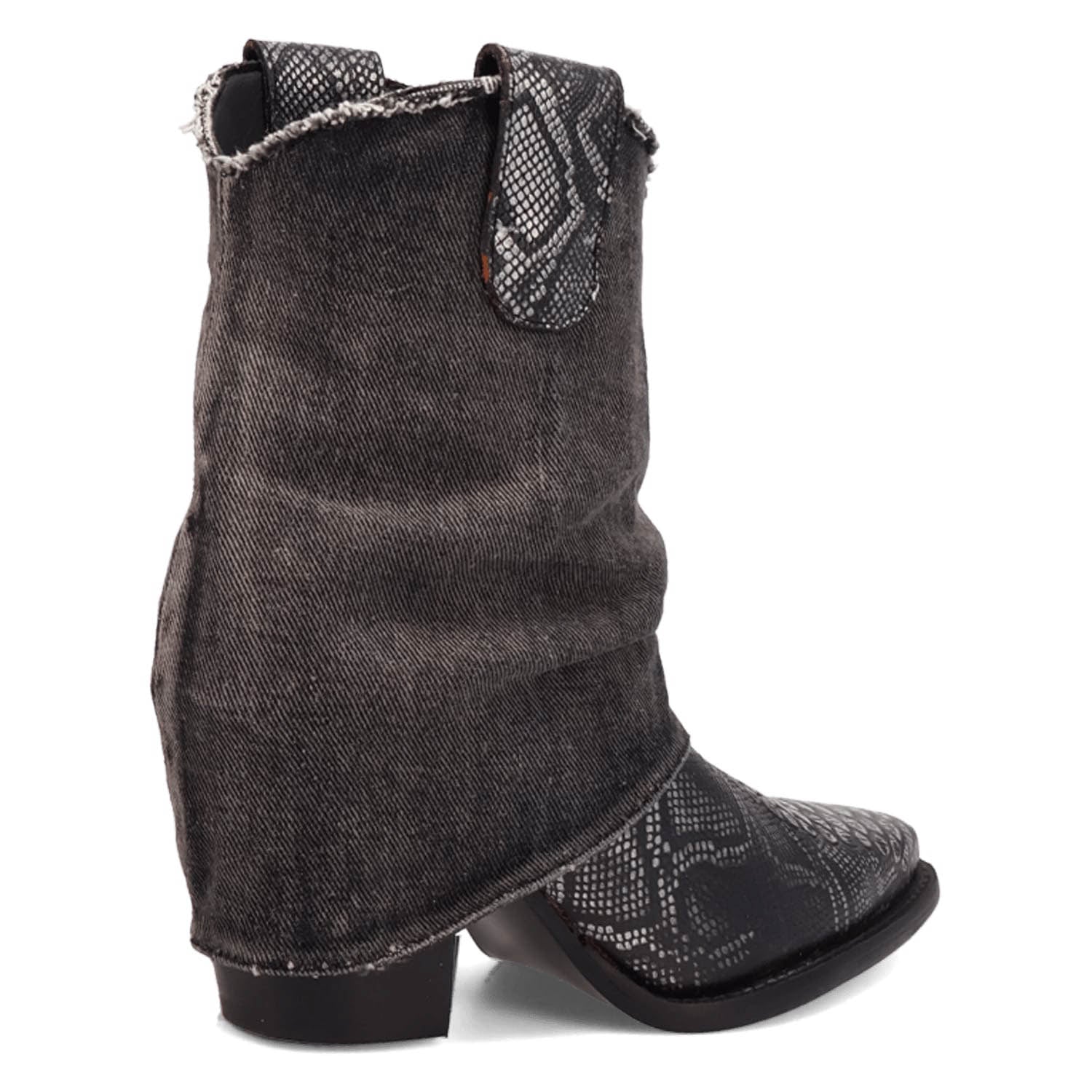 Blending the past and the present, Dingo boots stand out in the crowd. Denim Dream is where bold textures meet effortless style. With a striking snake print foot and a denim cuff overlay, this bootie offers a unique blend of fierce and chic. The sleek silhouette and unexpected design details make it the perfect statement piece for anyone looking to add a touch of edge to their look. Denim Dream is made to turn heads, one step at a time. Made from premium quality materials, these ankle boots will add a polished look to your western wardrobe.