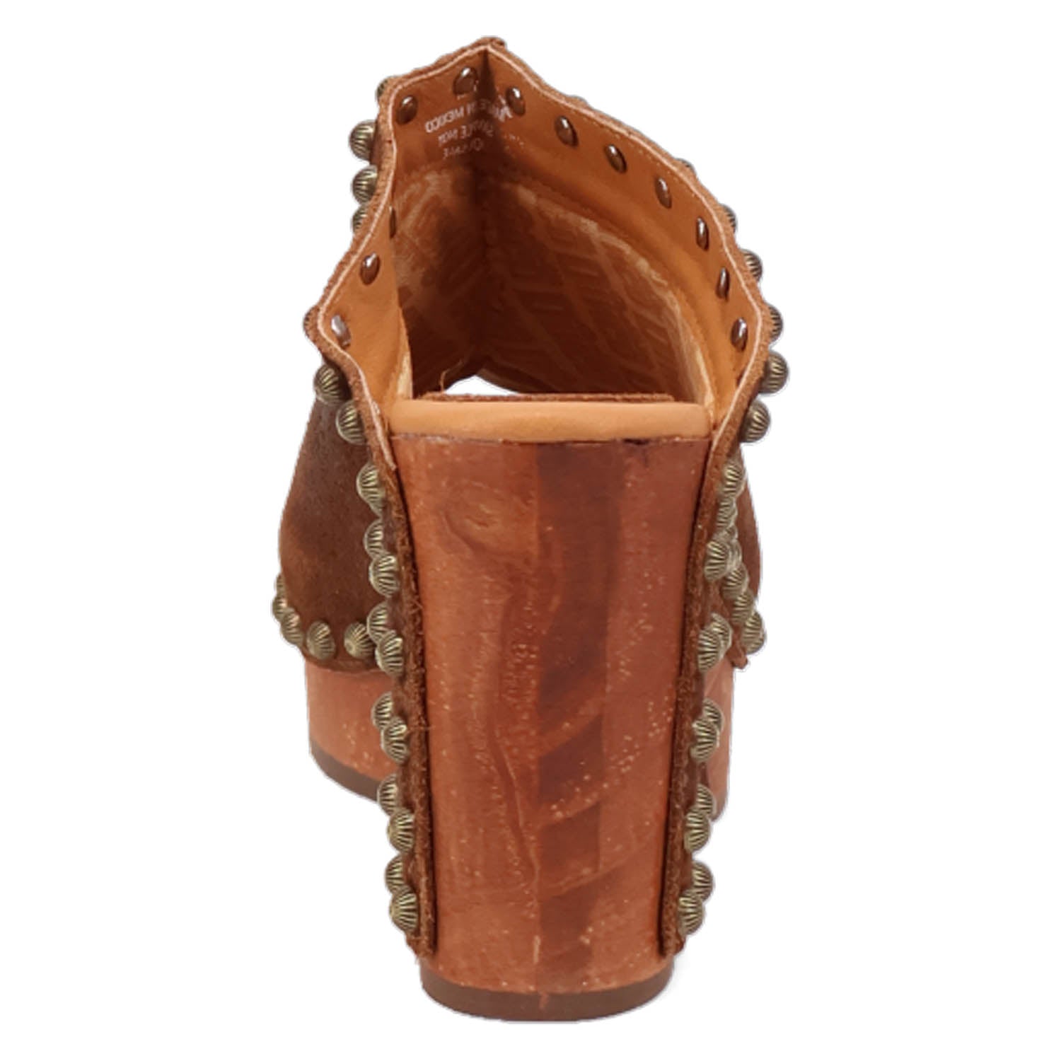 Dingo Womens Echo Wooden Brown Leather Stud Sandals Shoes