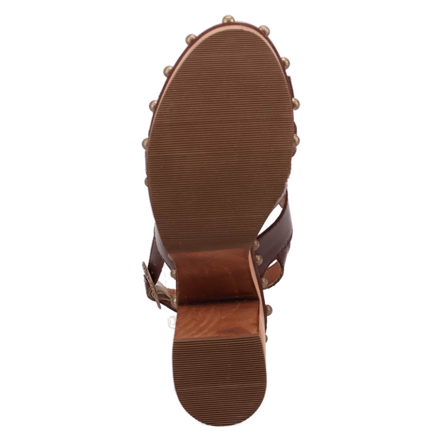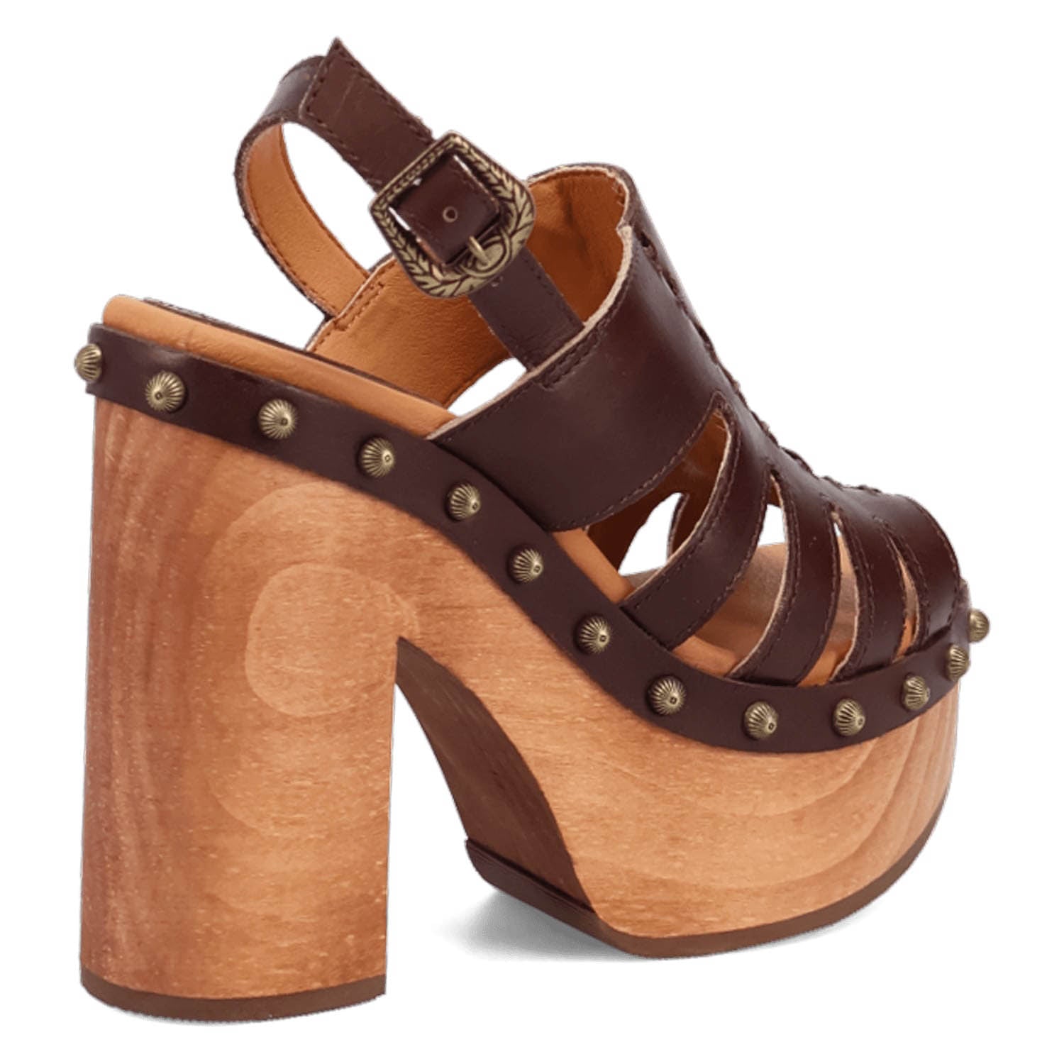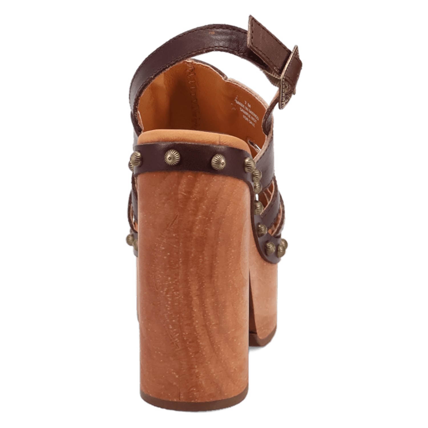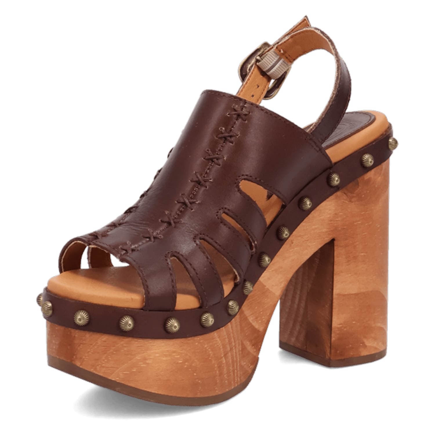 Dingo Womens Gema Wooden Brown Leather Stud Sandals Shoes