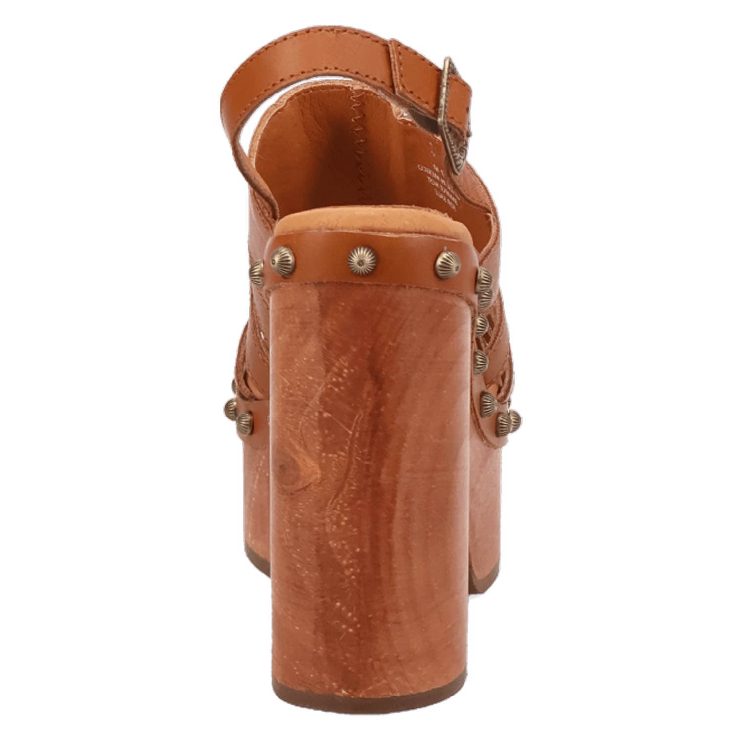 Dingo Womens Gema Wooden Tan Leather Stud Sandals Shoes
