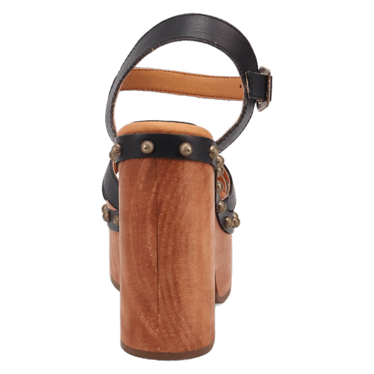 Dingo Womens Lotus Wooden Black Leather Stud Sandals Shoes