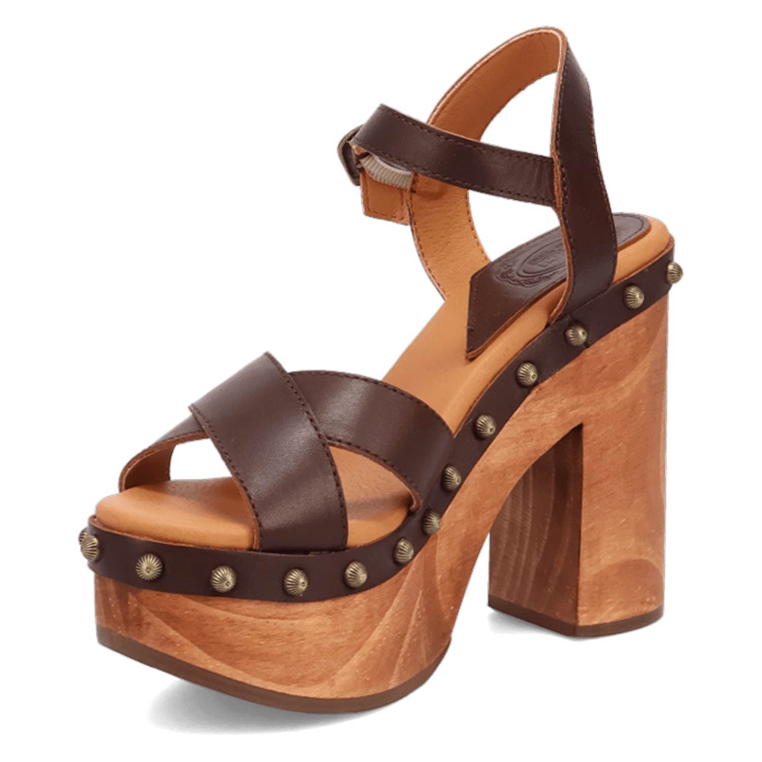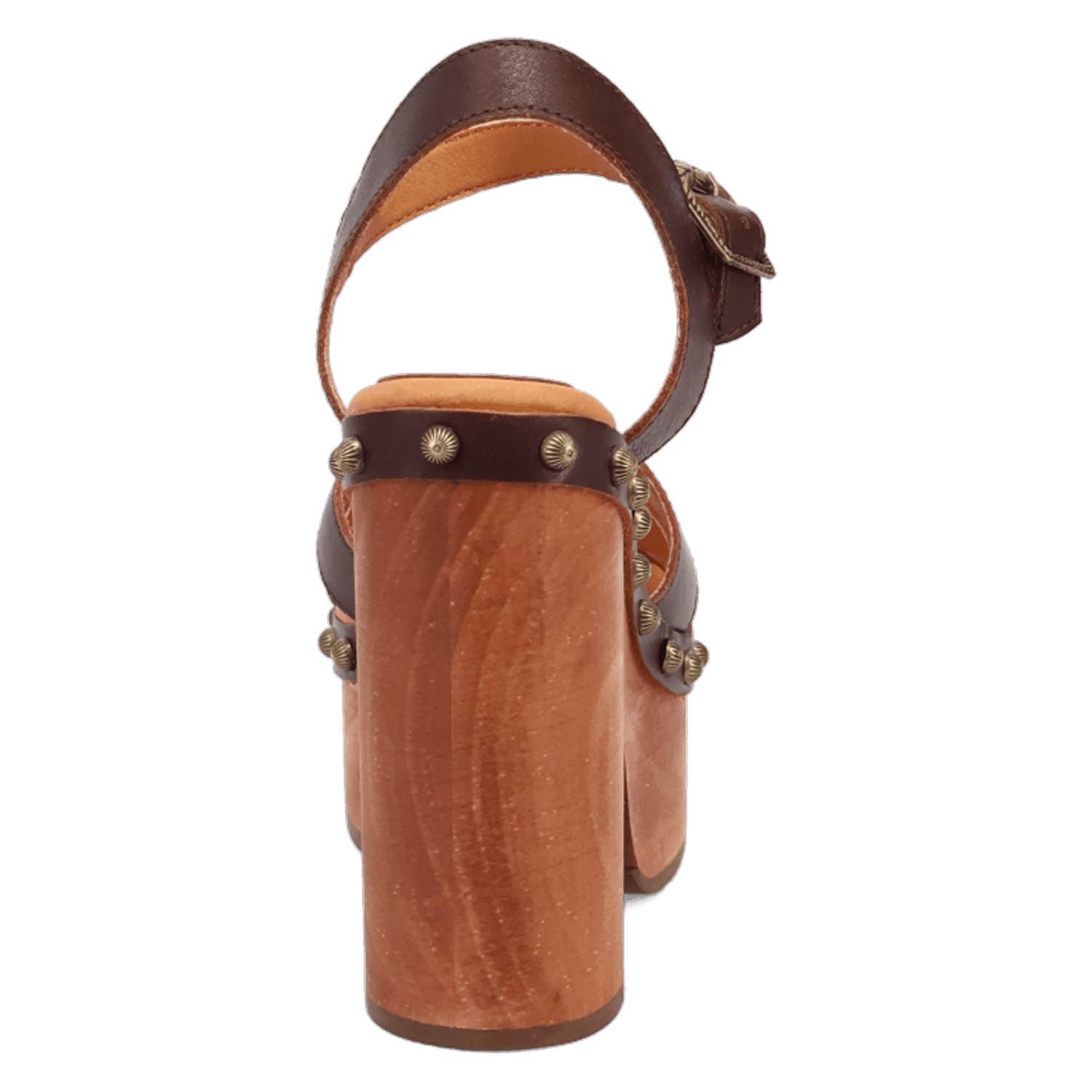 Dingo Womens Lotus Wooden Brown Leather Stud Sandals Shoes