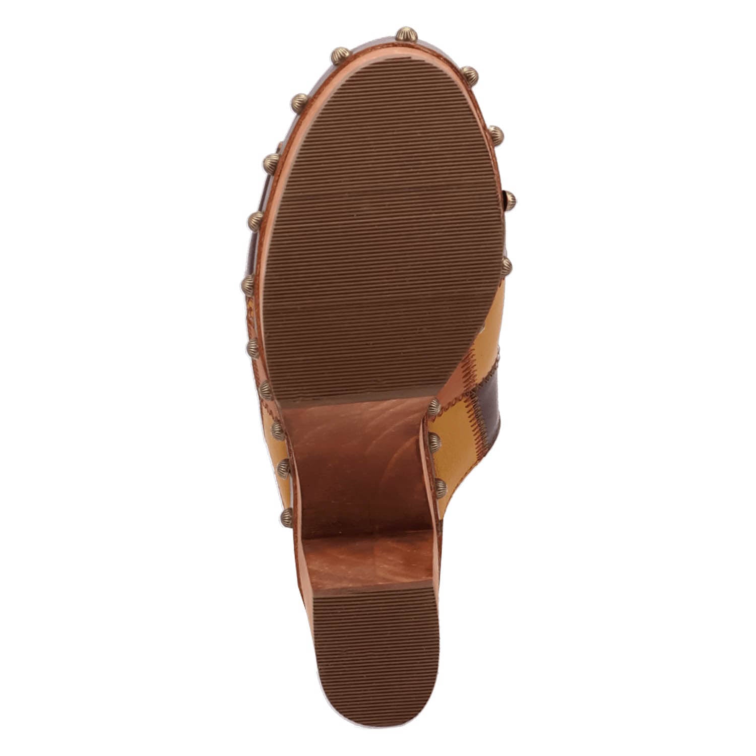 Dingo Womens Mosaic Wooden Multi-Color Leather Stud Sandals Shoes