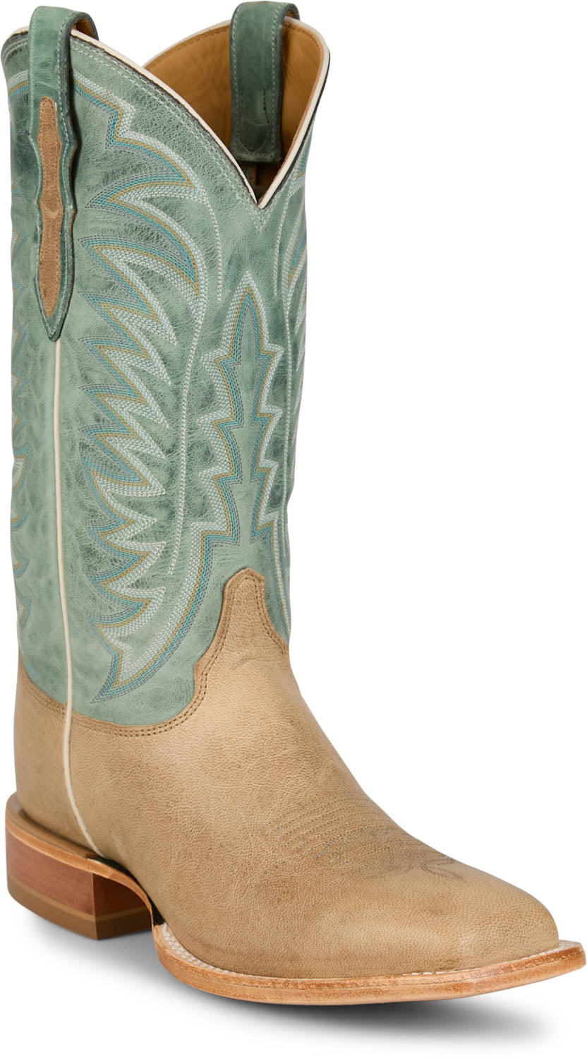 Justin Mens Burchett 13in Western Bone/Aqua Goat Leather CPX Cowboy Boots