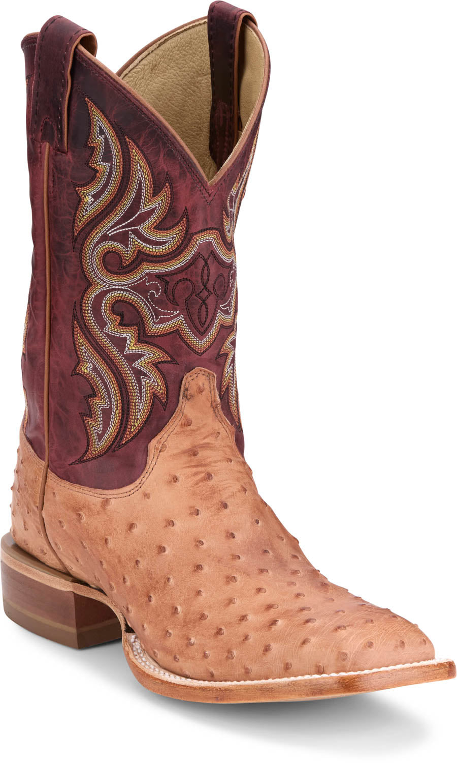 Justin Mens Moseley Vintage Cognac/Purple FQ Ostrich Cowboy Boots