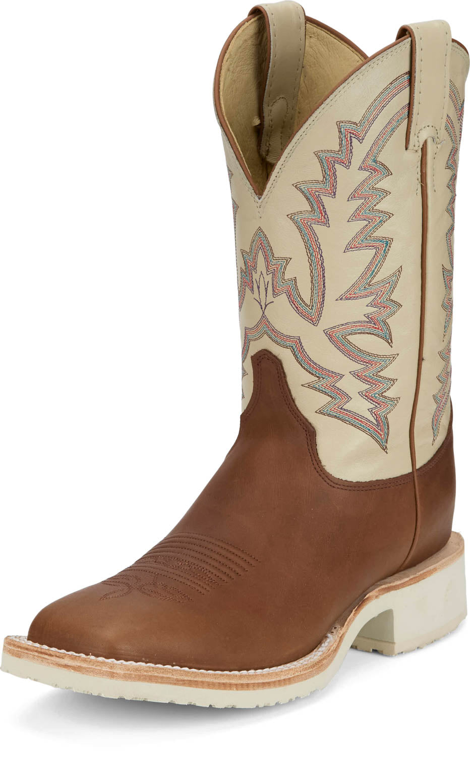 Justin Mens Trainor 11in Western Caramel/Off-White Leather Cowboy Boots