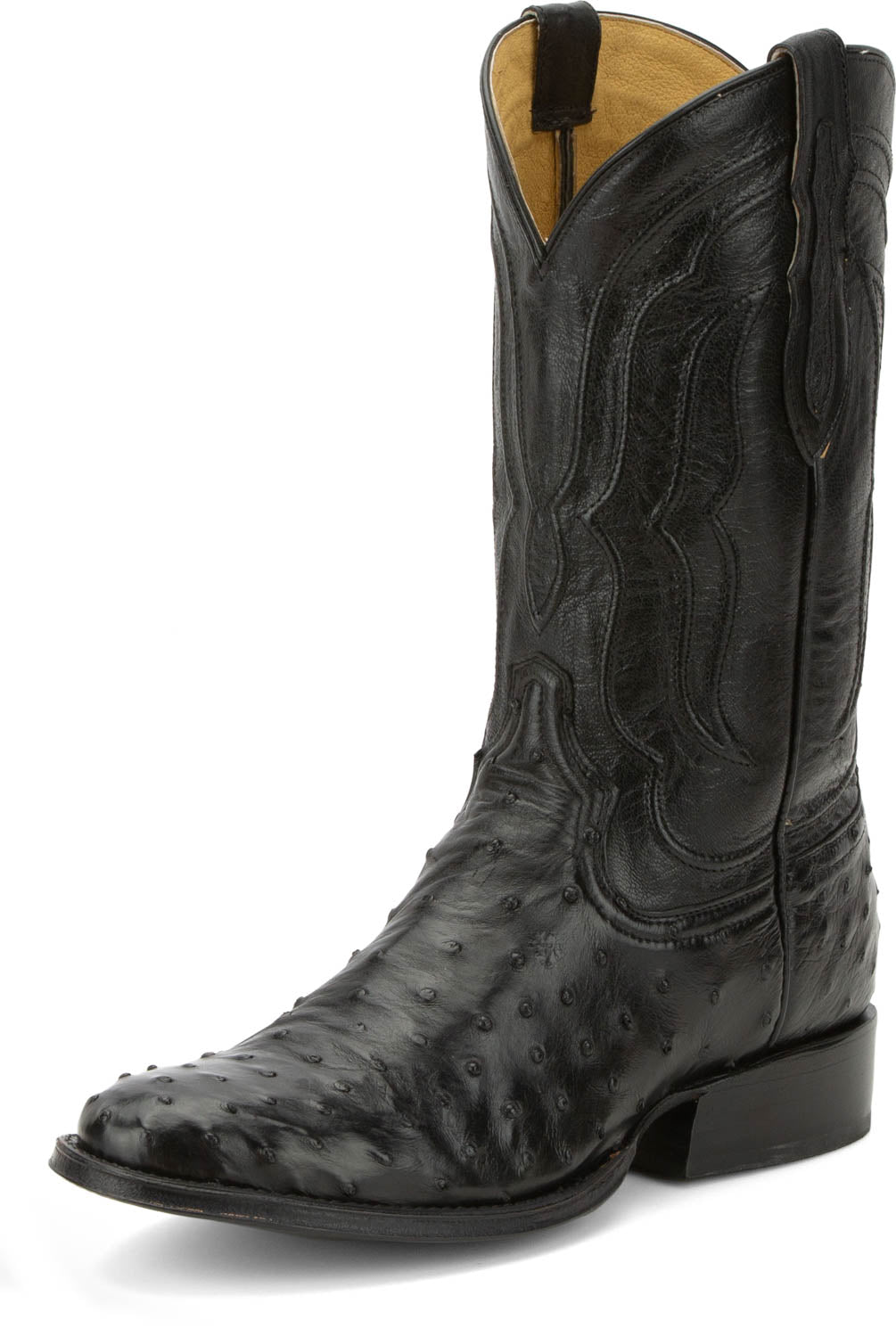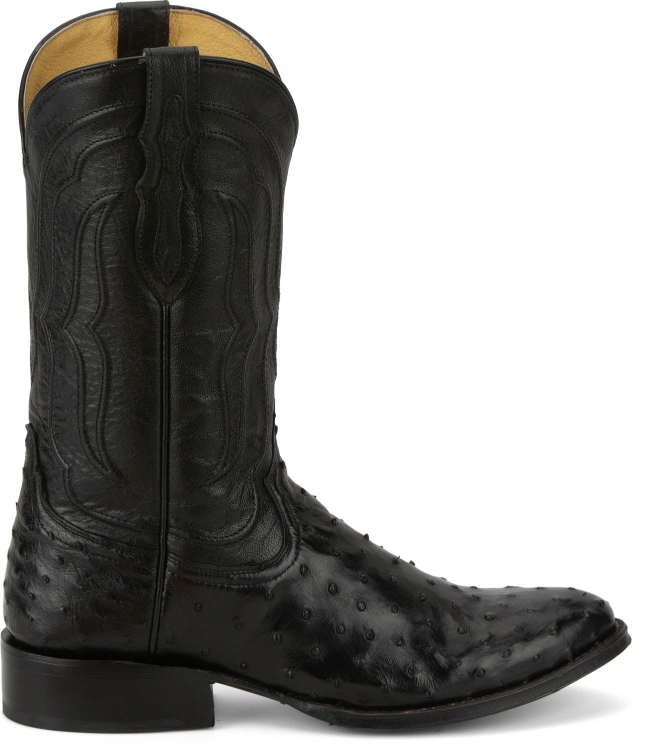 Tony Lama Mens Canonero 12in Western Jet Black Full Quill Ostrich Cowboy Boots