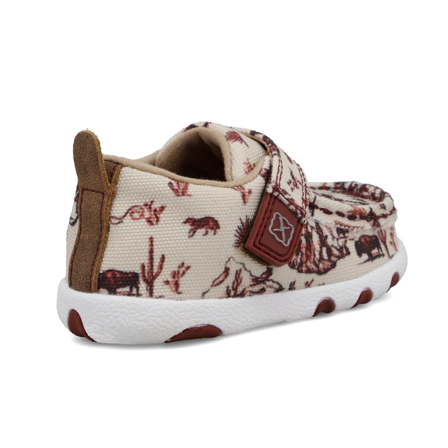 Twisted X Infant Unisex Driving Moc Bison Maroon/Ivory Fabric Slip-On Shoes