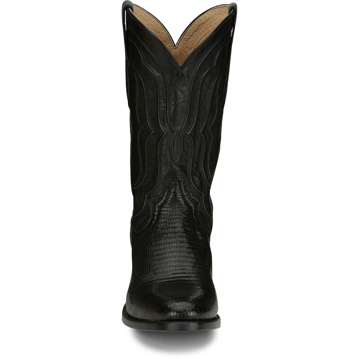• Lizard skin vamp and leather shaft