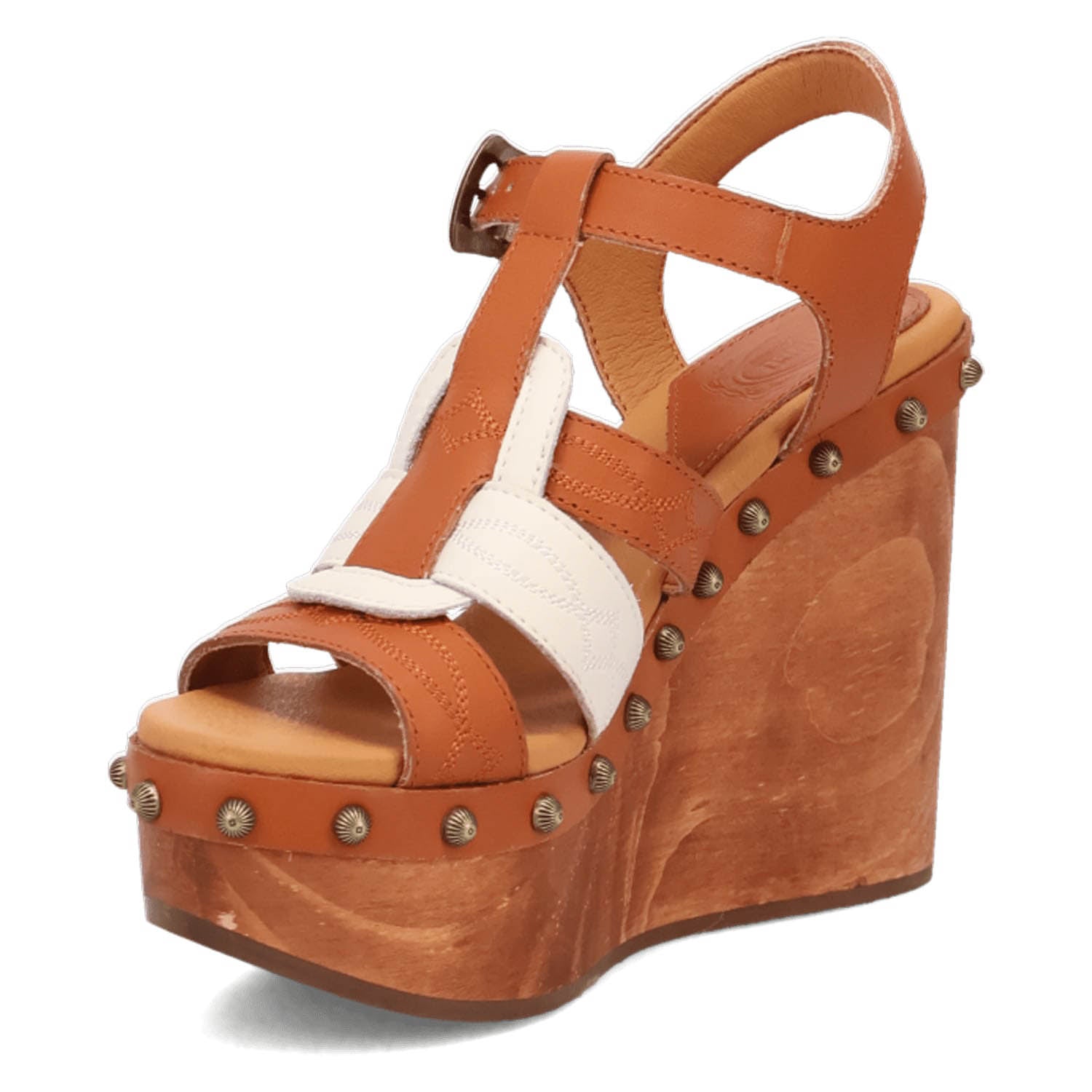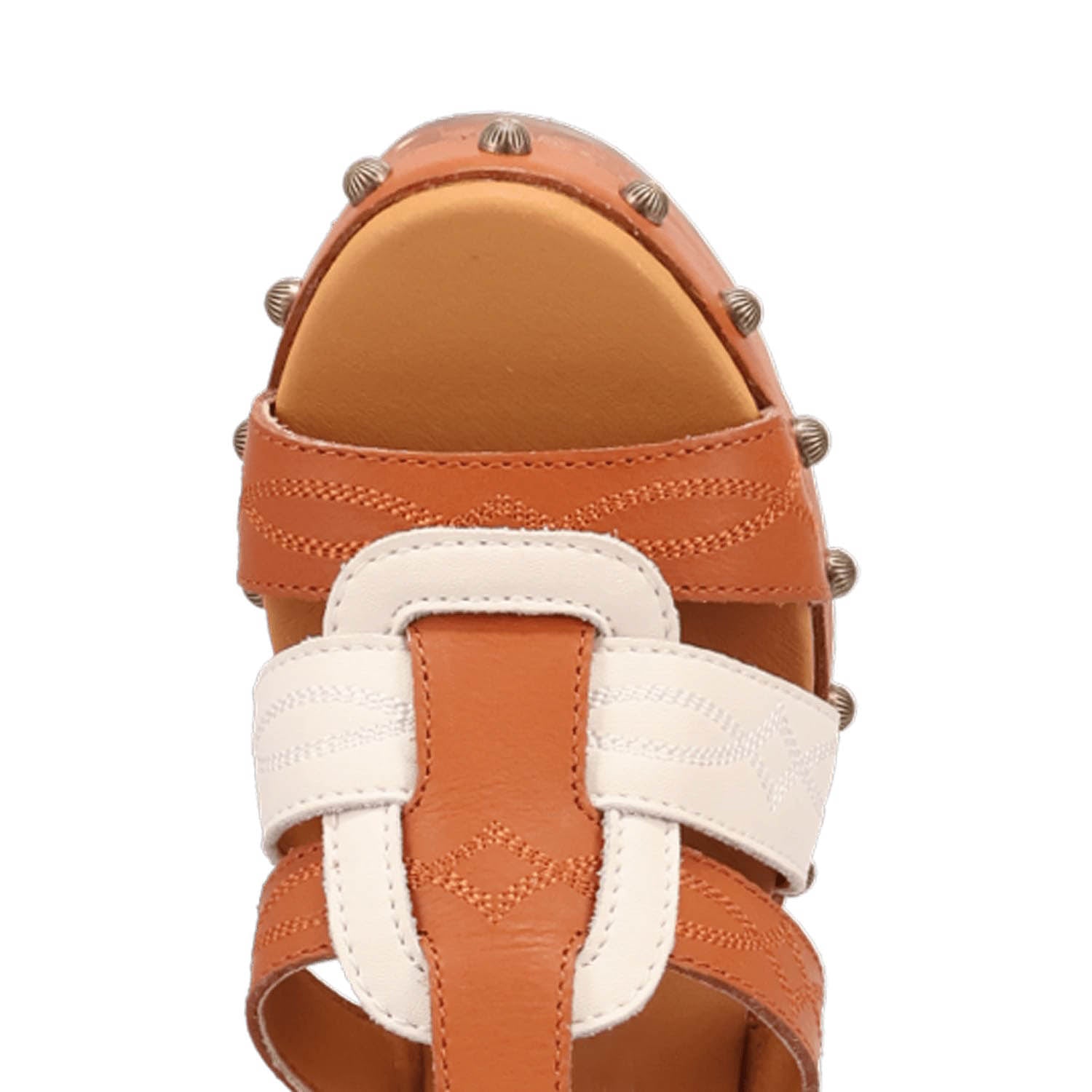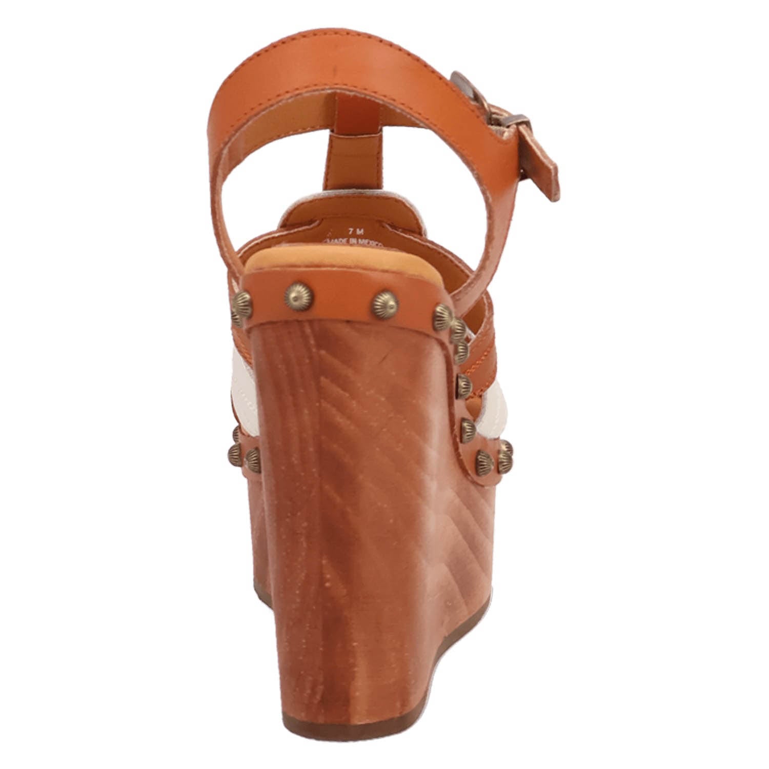 Dingo Womens Cosmo Wooden Russet Leather Stud Sandals Shoes