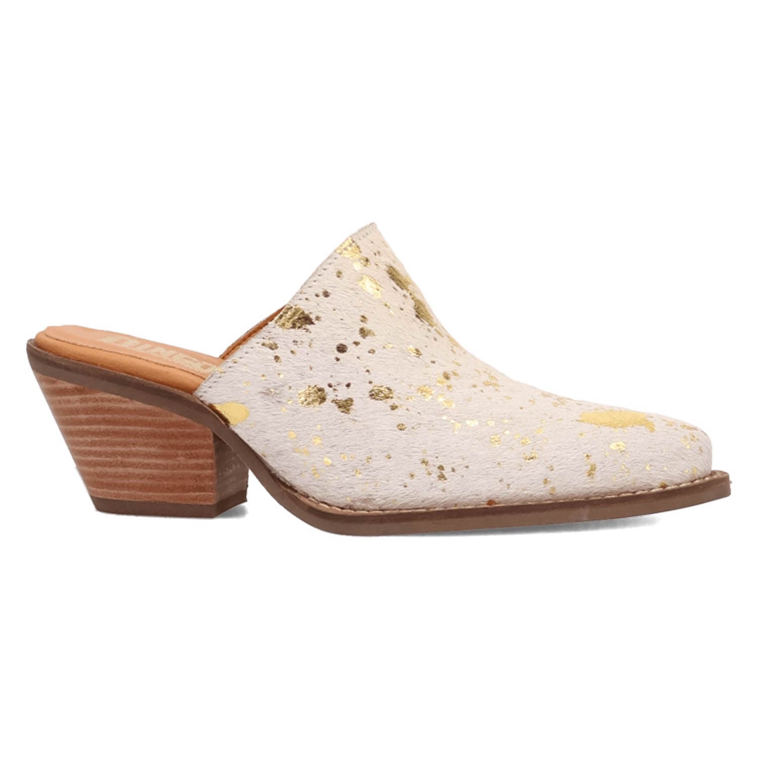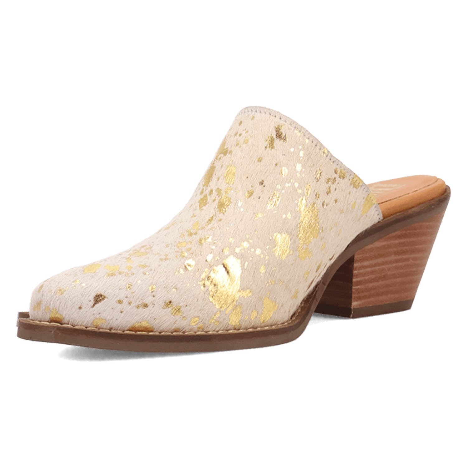 Dingo Womens Cash Cow Gold Hair-on-Hide 2.5in Heel Mules Shoes