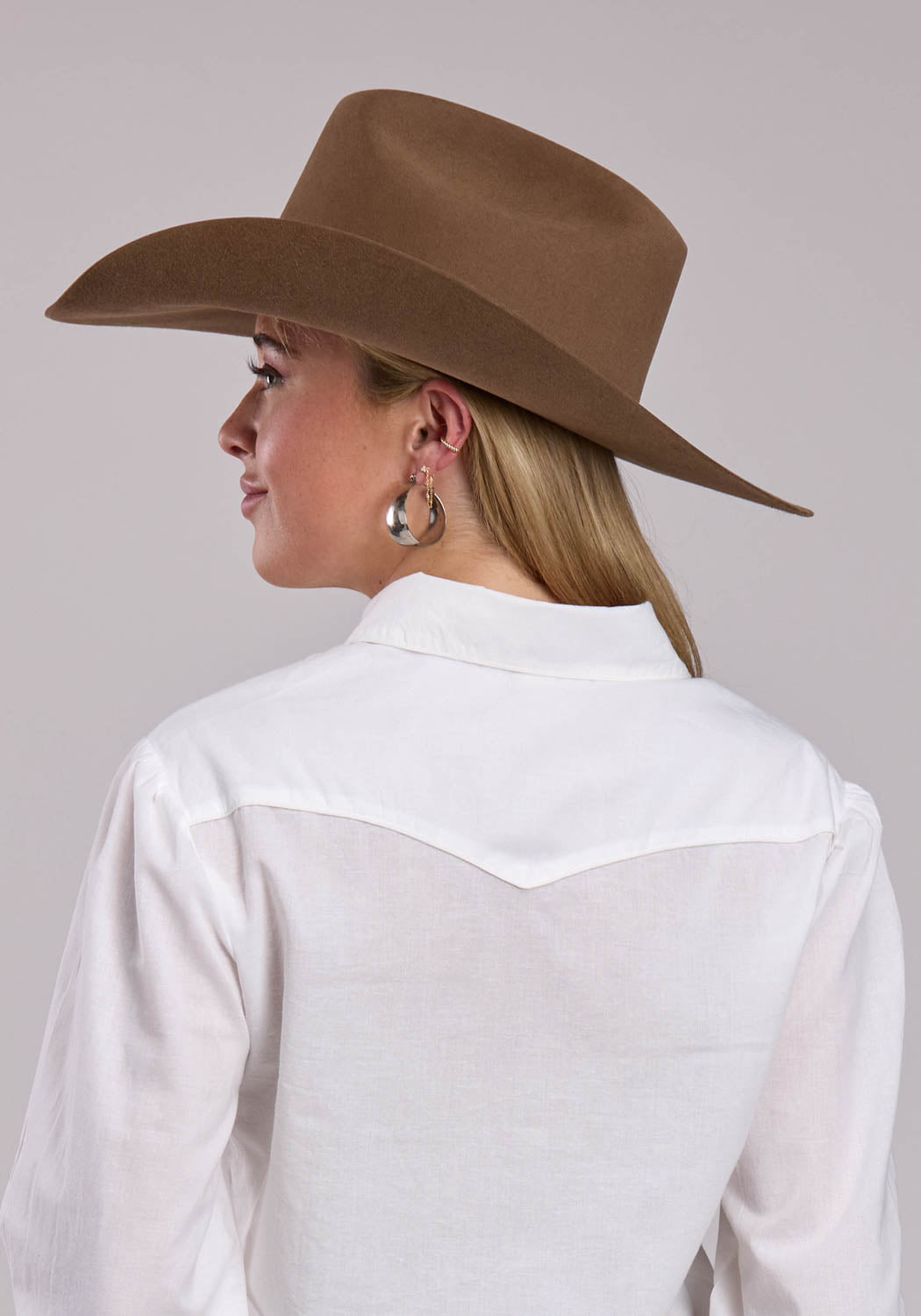 Roper Womens Puffed Sleeve Cropped Light Cream 100% Cotton L/S Blouse