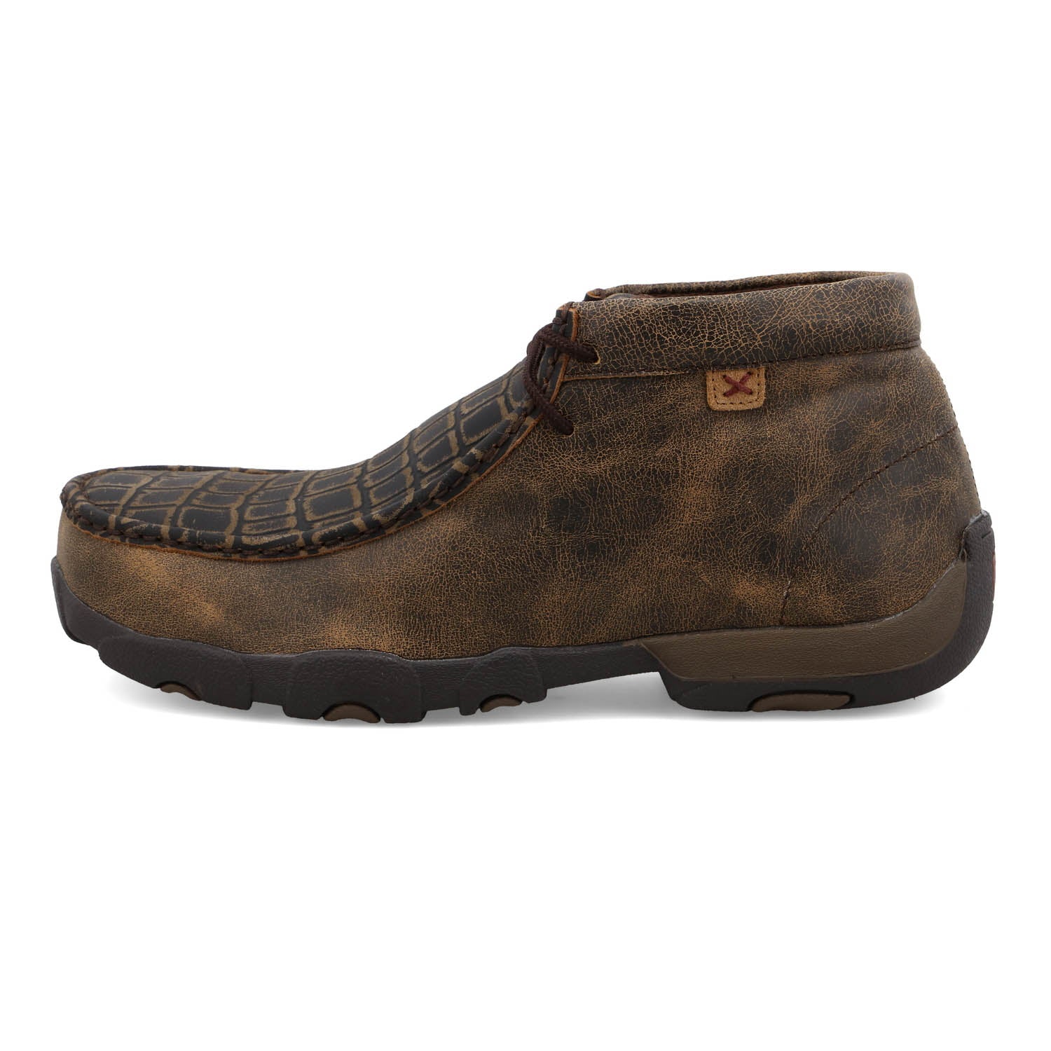 Twisted X Mens Chukka Driving Moc Caiman Brown Leather Work Boots