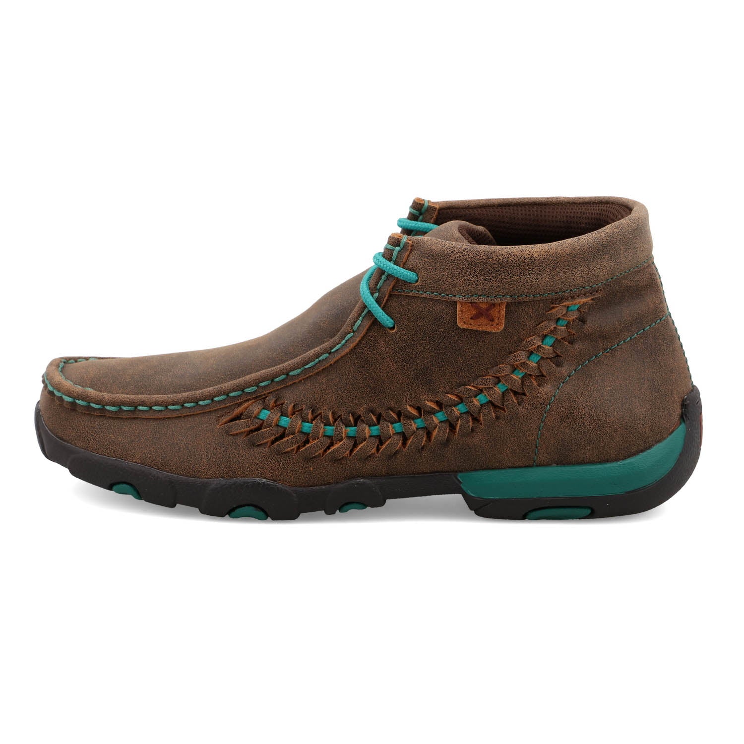 Twisted X Womens Driving Moc Laced Brown/Turquoise Leather Chukka Boots