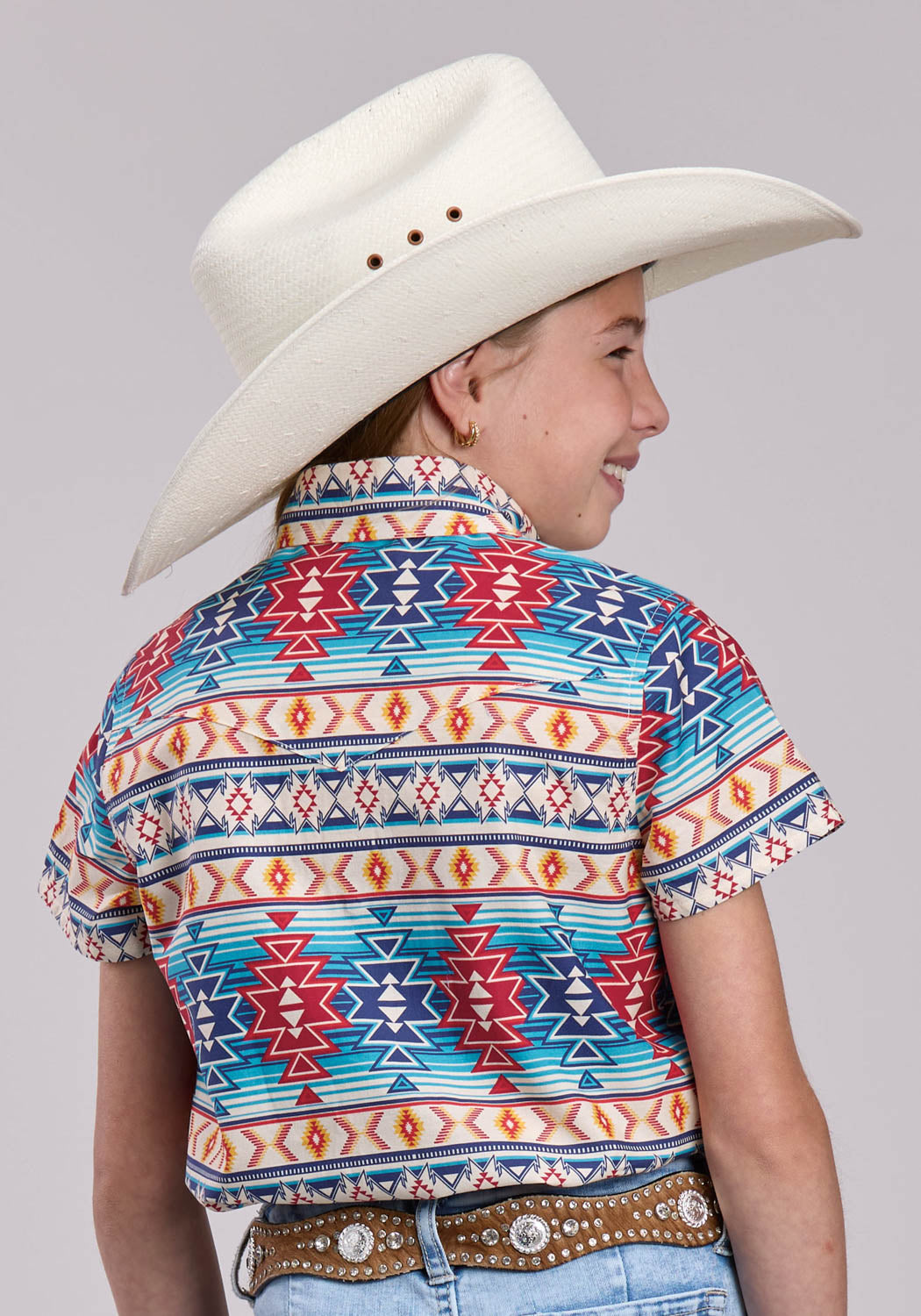 Roper Kids Girls Horizontal Aztec Blanket Stripe Multi 100% Cotton S/S Shirt