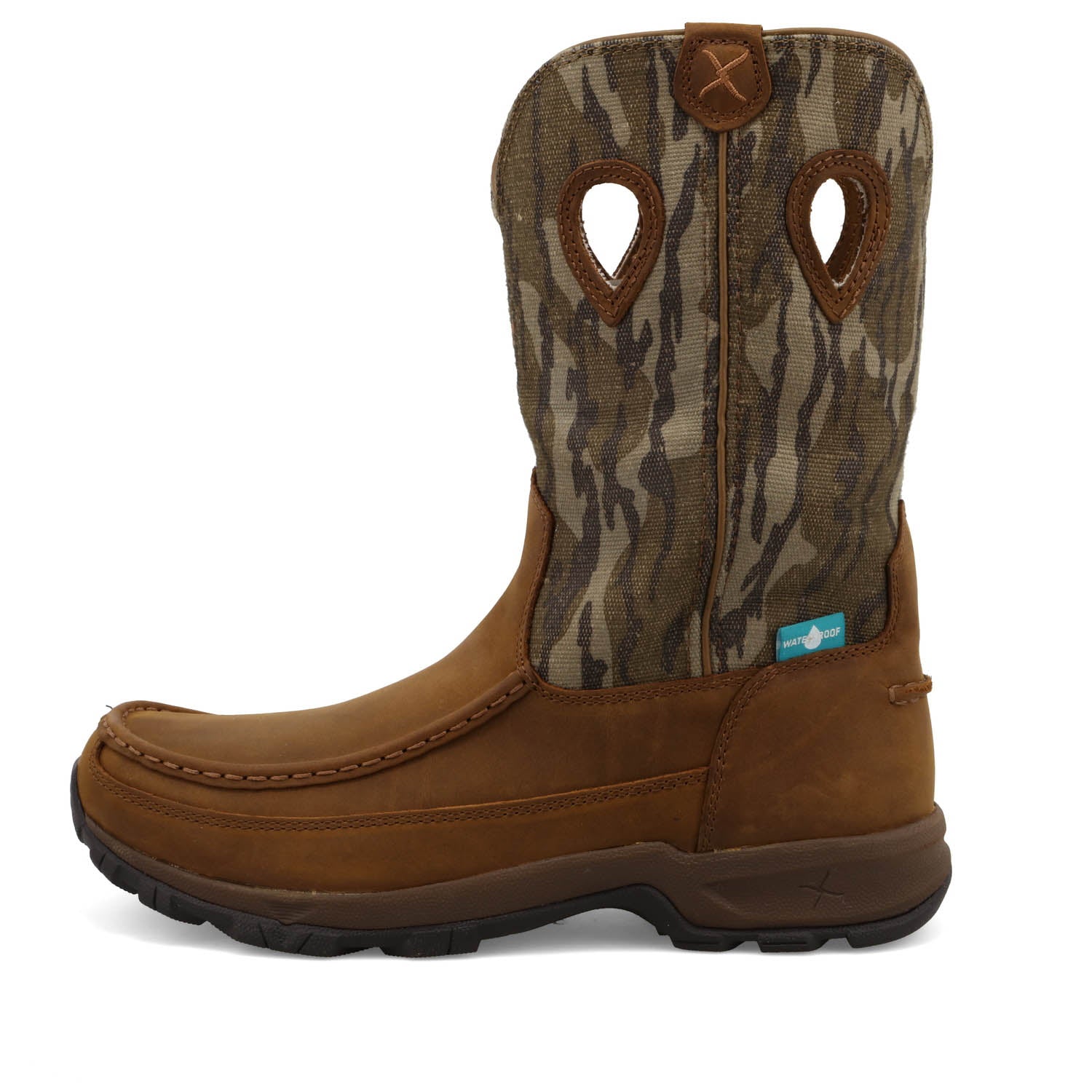 Twisted X Mens 11in Pull On Hiker WP Mossy Oak Bottomland Leather Work Boots