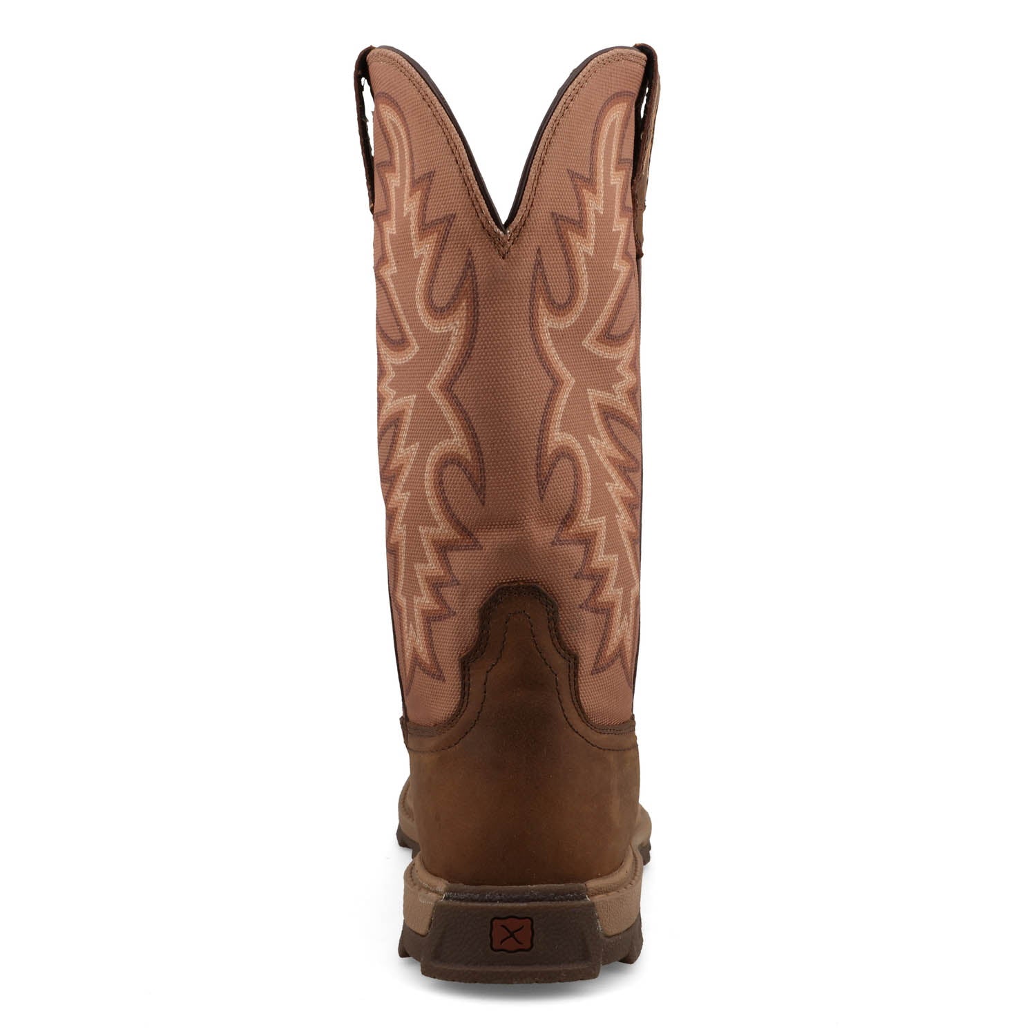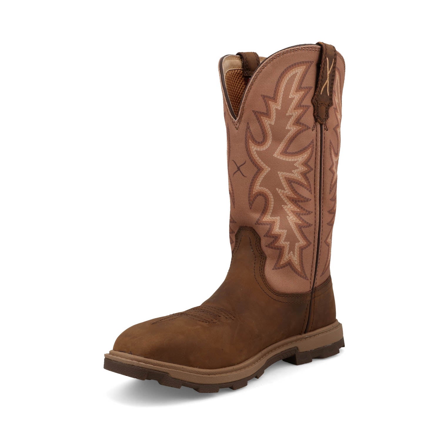 Always striving, never compromising. Twisted X is dedicated to making better boots and it shows. Elevate your workday with the 11" UltraLite X Work Boot. This boot boasts an ultra-lightweight design, thanks to the unique EVA compound. The nano toe provides ASTM F2413-18 F/I/C EH protection, while the air mesh lining and taped interior seams keep you comfortable. Grab and go with leather pull tabs and feel good knowing that the Blend85 footbed is made with 85% recycled foam and the ecoTWEED lining from recycled plastic bottles. Take on any task with confidence, thanks to the storm welt, composite shank, and EH-rated oil and slip resistant rubber outsole with 1" tall block heel. Work hard and stay protected with these work boots.