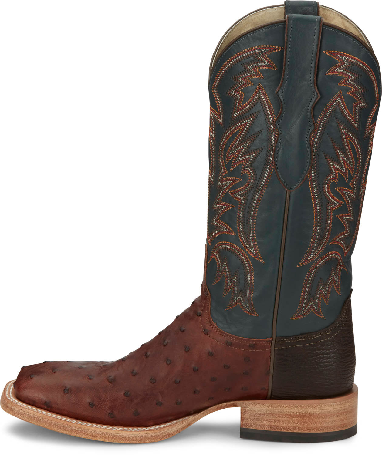 Justin Mens Doc Bar AQHA Brandy Full Quill Ostrich Cowboy Boots