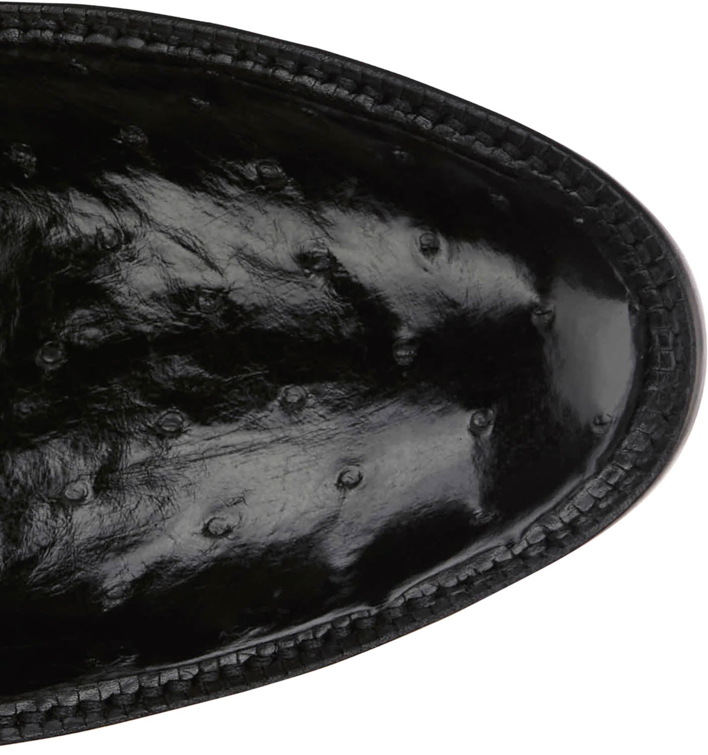 • Full quilll ostrich skin vamp and leather shaft