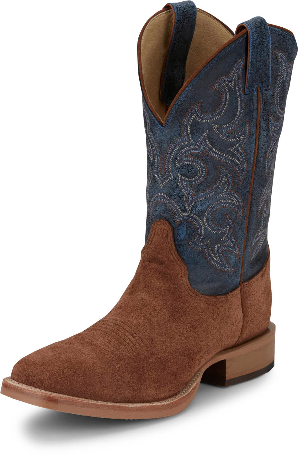 Justin Mens Fergus 11in Roughout Golden Oak/Blue Leather Bent Rail Cowboy Boots