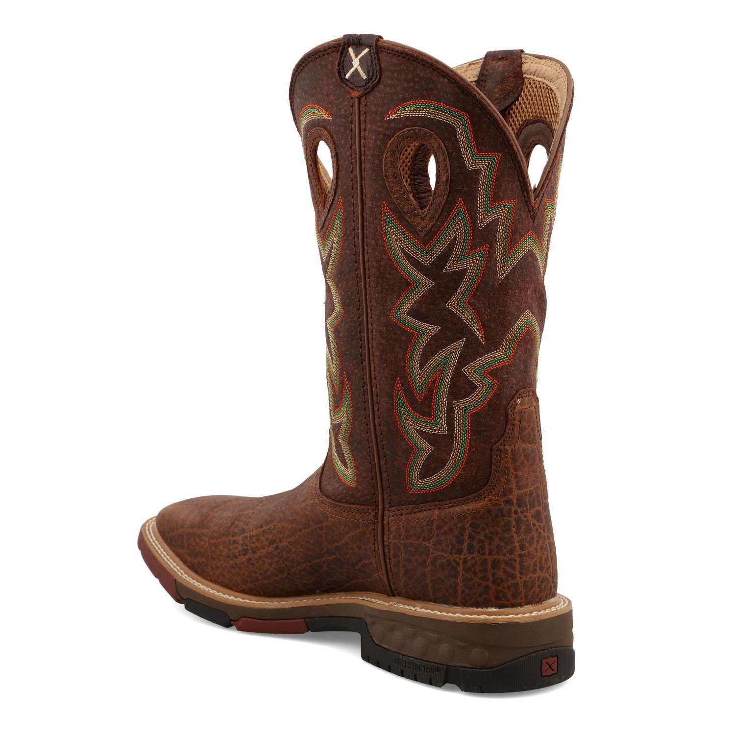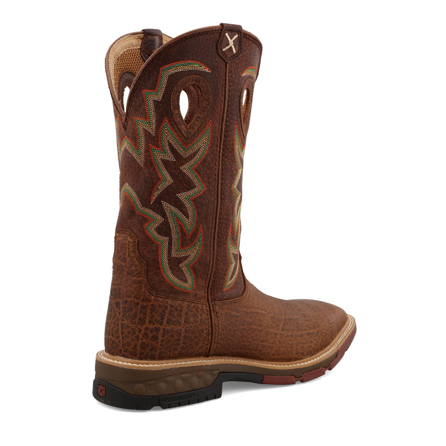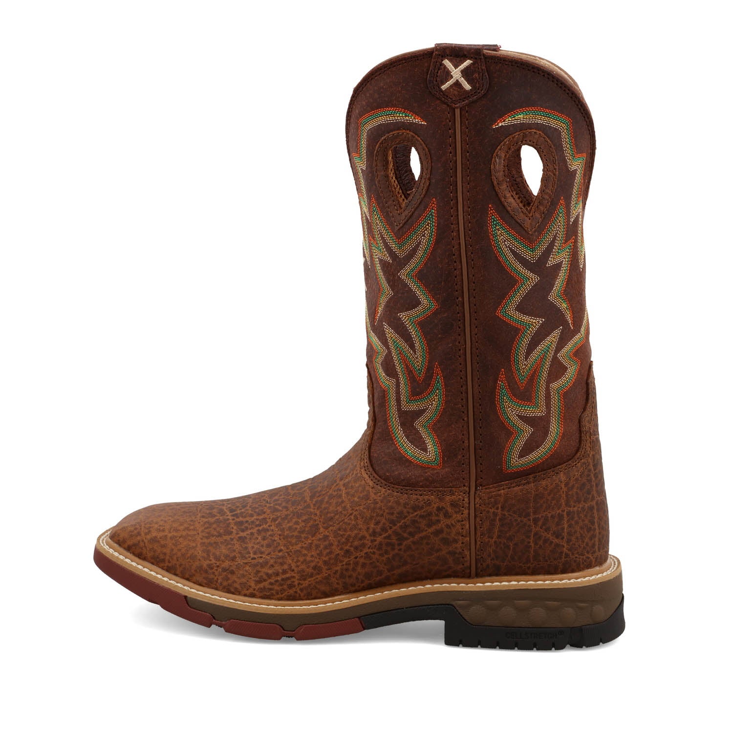 Always striving, never compromising. Twisted X is dedicated to making better boots and it shows. This Men's 12" Western Work Boot is a contender for all day comfort. Handcrafted in full-grain leather, features Twisted X patent-pending CellStretch comfort technology ensuring that every step you take, is backed by superior comfort. For stability and durability, Twisted X has combined an EVA midsole, integrated CellStretch comfort technology, and a nylon/glass fiber shank. The integrated oil and slip resistant molded rubber outsole provides durability, and improved traction, for whatever your day may bring. Work hard and stay protected with these work boots.