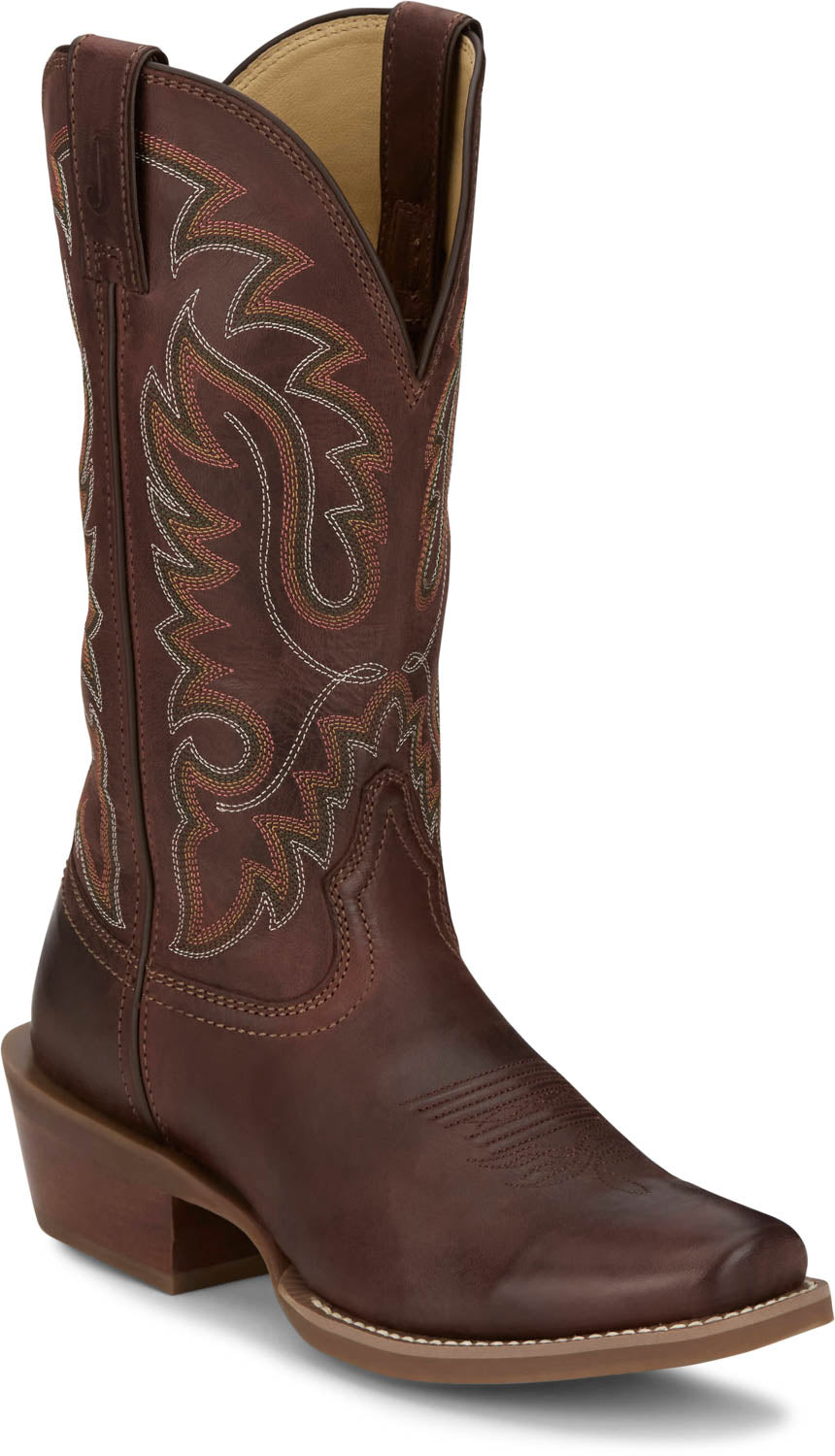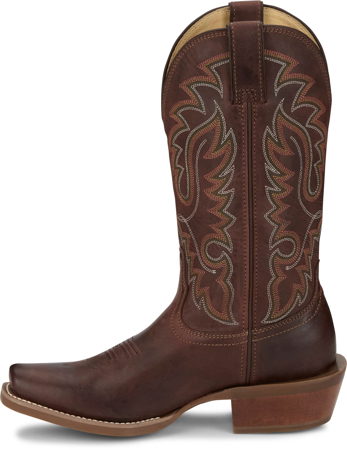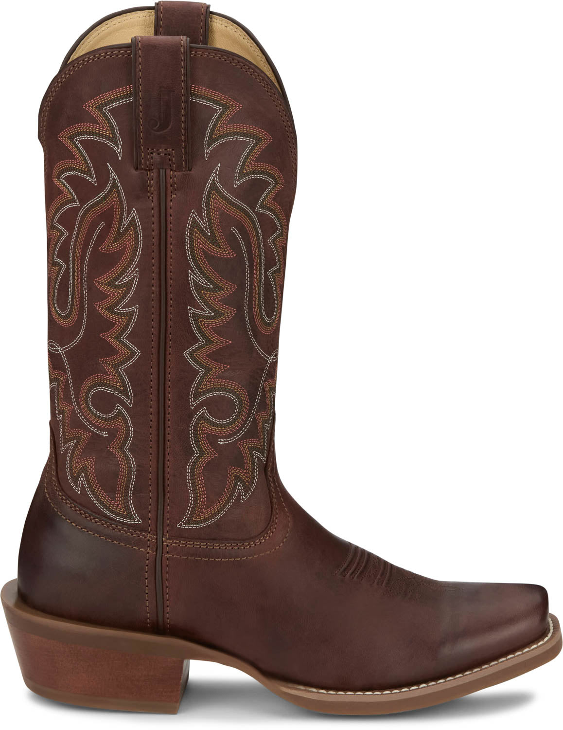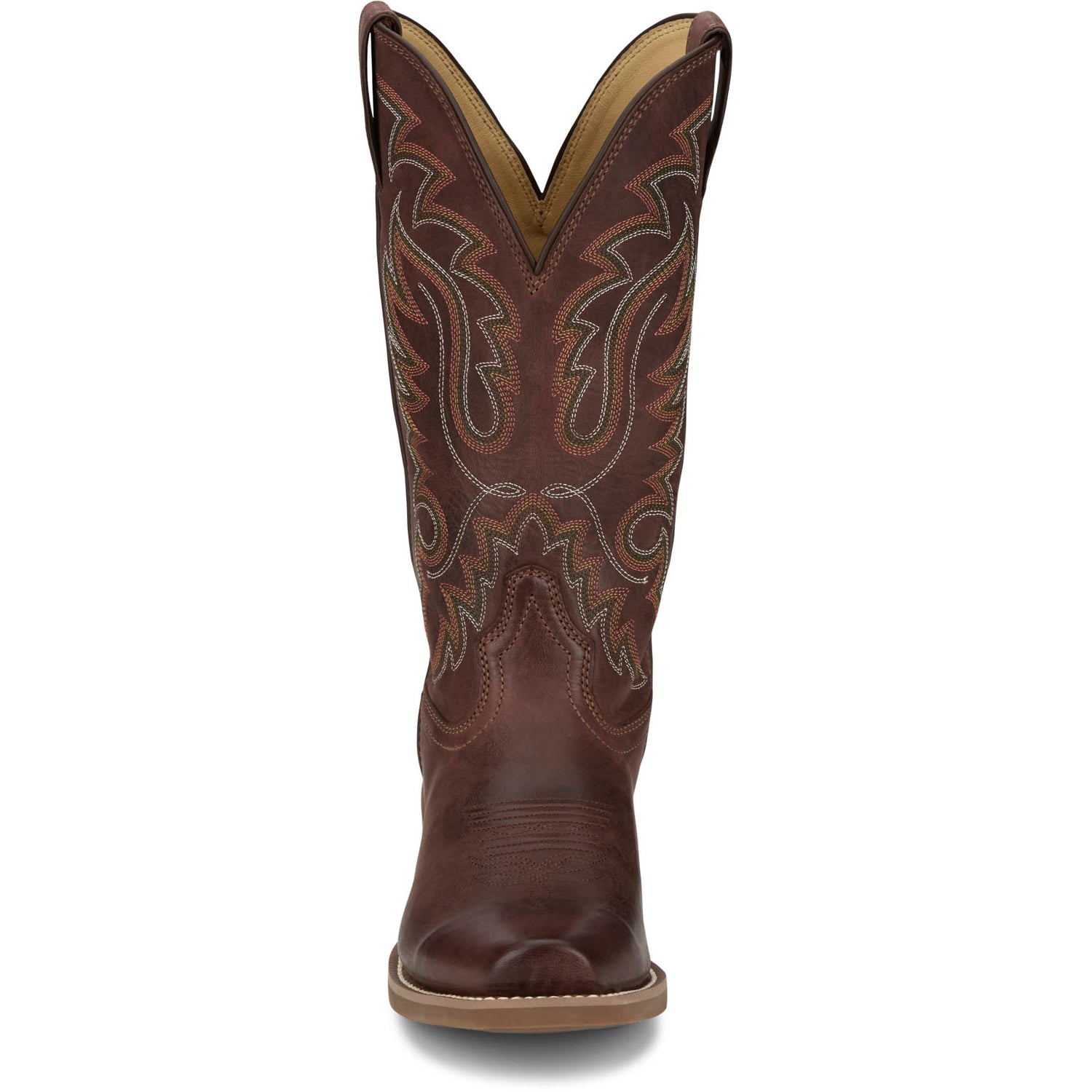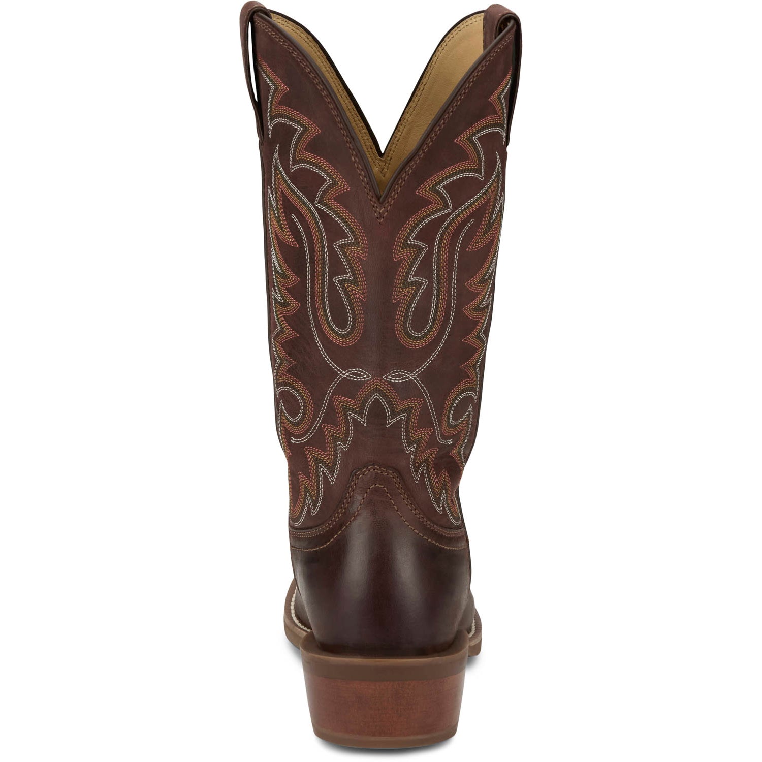 Justin Mens Cowboy Town 13in Western Bay Brown Leather Frontier Cowboy Boots
