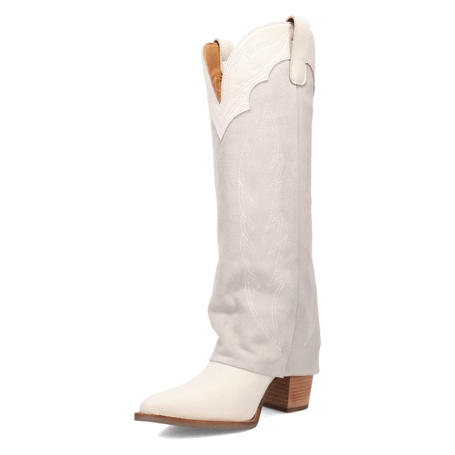 Dingo Womens Wild Horses White Leather 16in Cowboy Boots