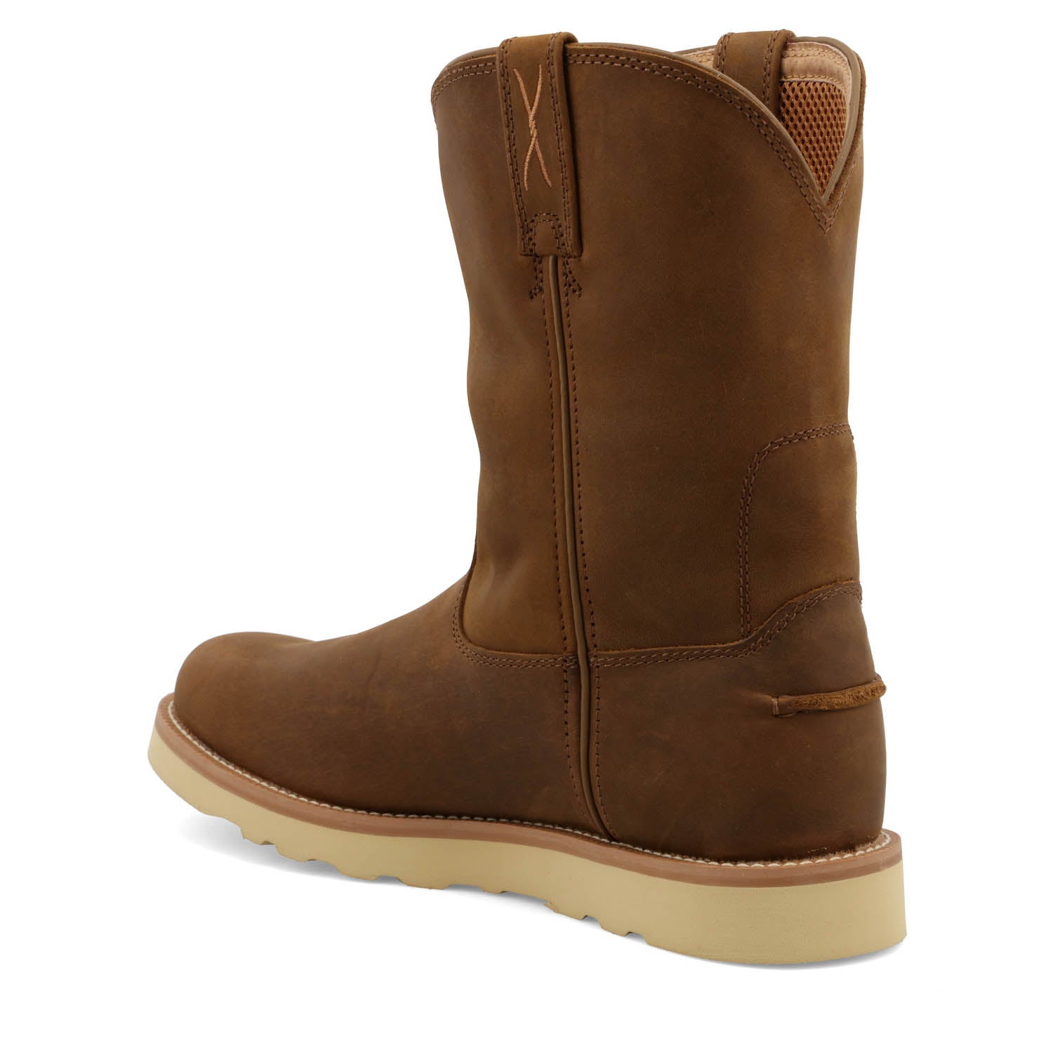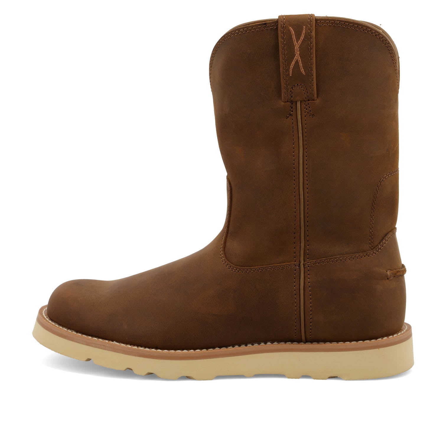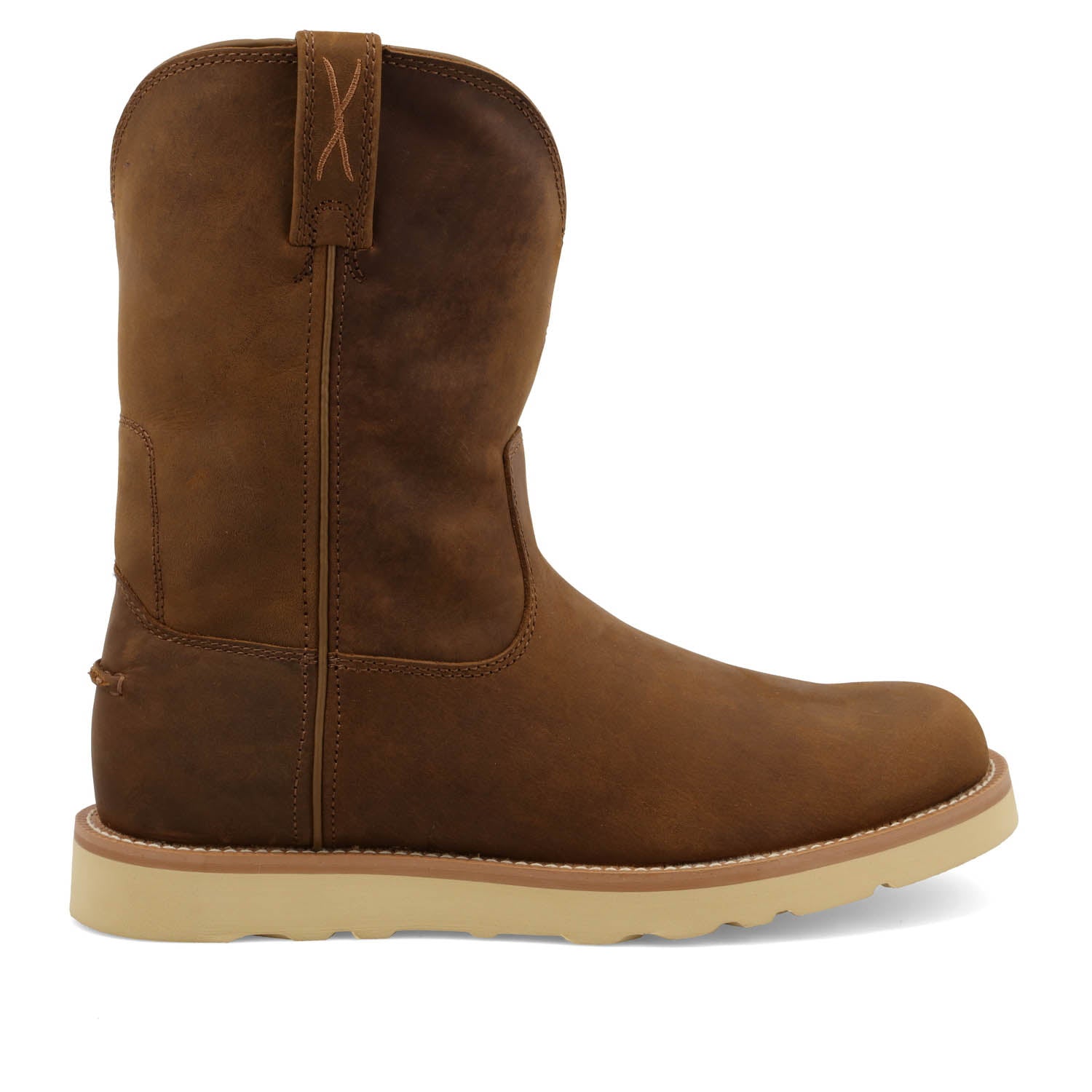 Twisted X Mens 10in Work Pull On Wedge Distressed Saddle Leather Cowboy Boots