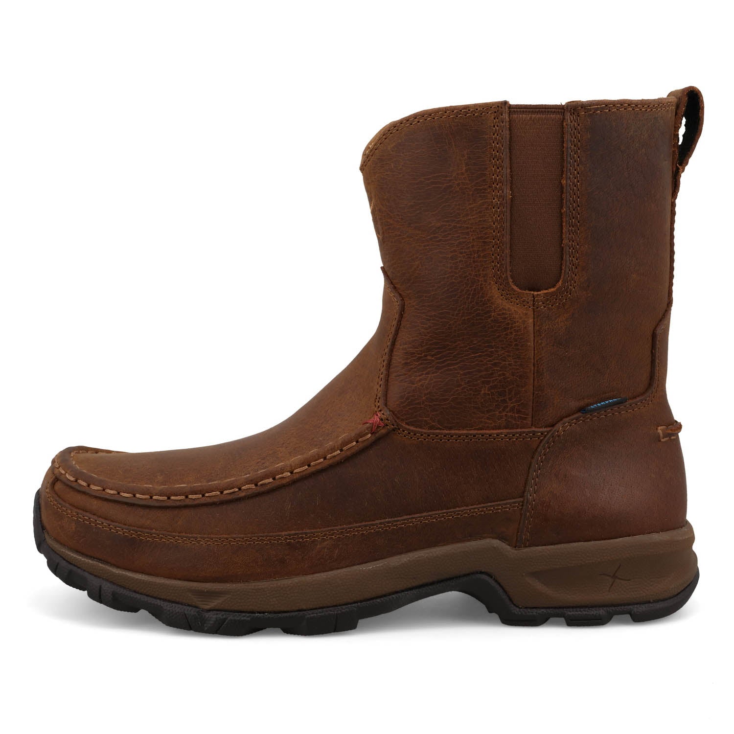 Always striving, never compromising. Twisted X is dedicated to making better boots and it shows. Take on any challenge with our 8" Pull On Hiker Boot, featuring BarnShield leather for added resistance to harsh environmental factors. The side zipper and elastic panel make for easy on and off, while the waterproof lining and Blend85 footbed provide comfort and eco-friendly benefits. With a composite insole, EVA midsole, and a slip-resistant rubber outsole, this is your go-to outdoor boot. Work hard and stay protected with these work boots.