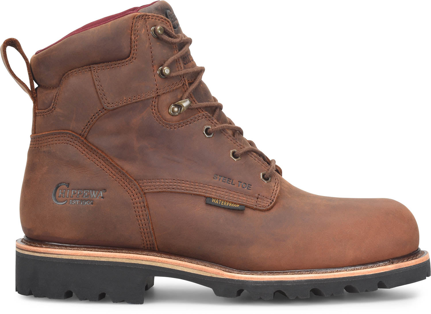 Chippewa Mens Super DNA 6in WP Steel Toe 400G Black Leather Work Boots