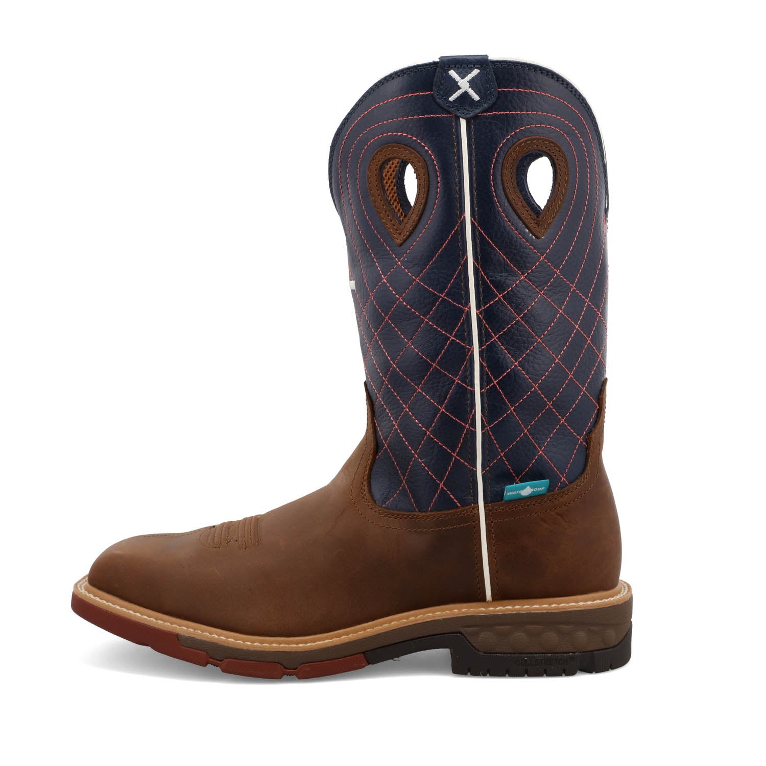 Twisted X Mens 12in Western WP Alloy Toe Mocha/Navy Leather Work Boots