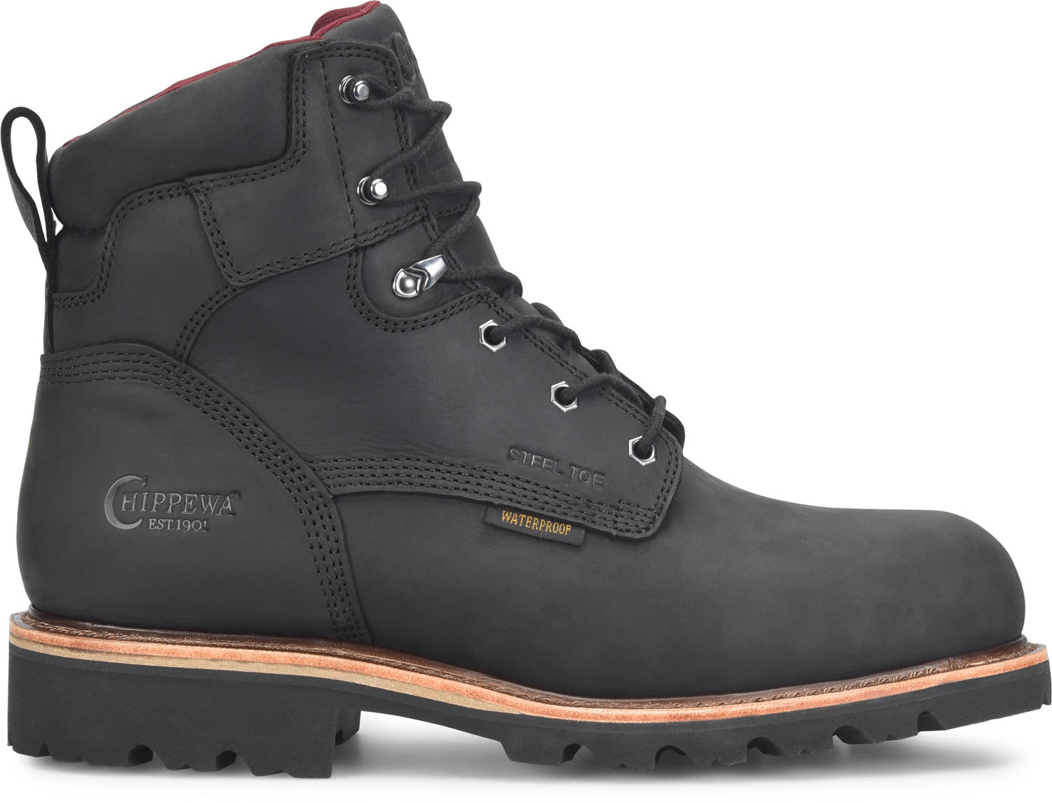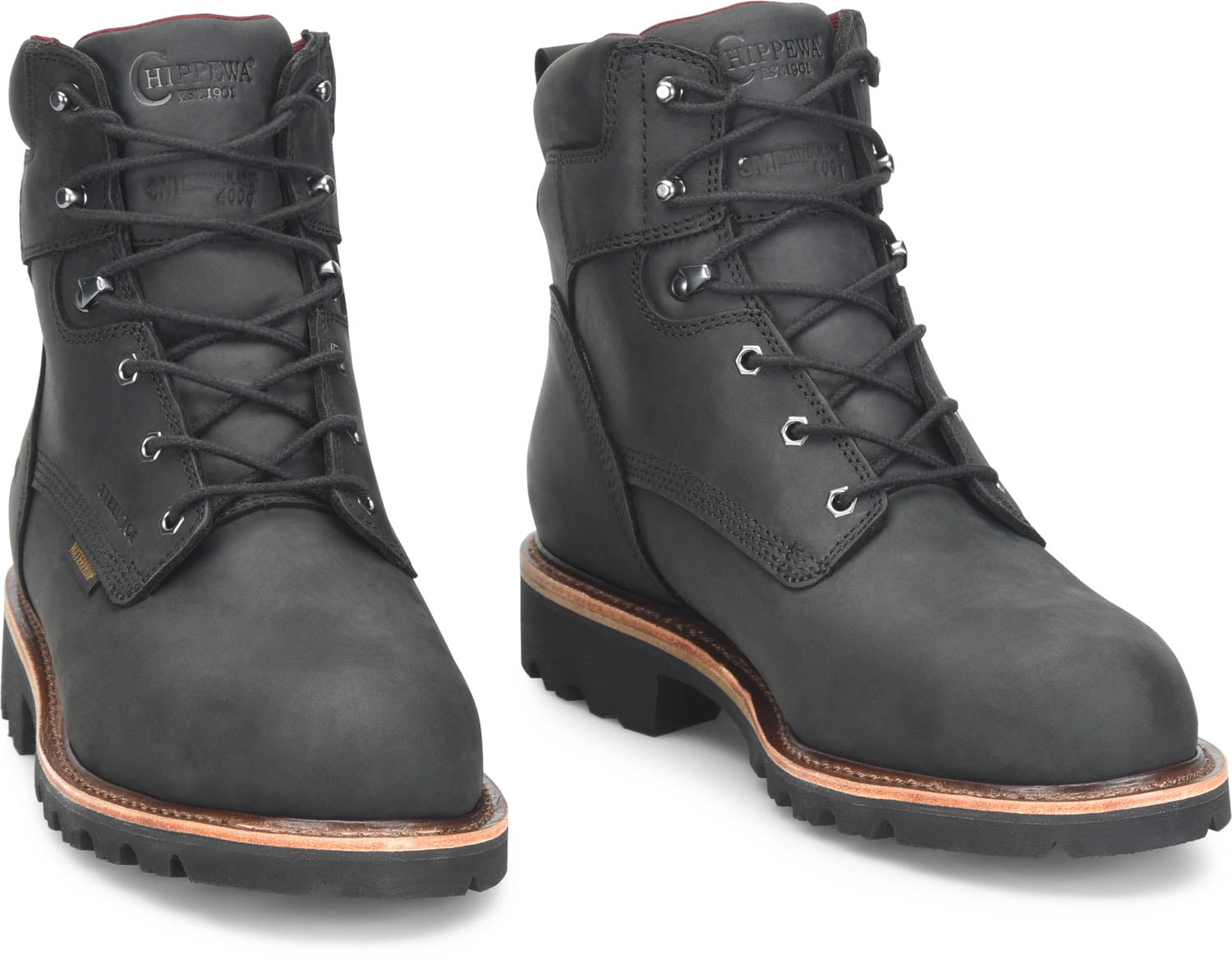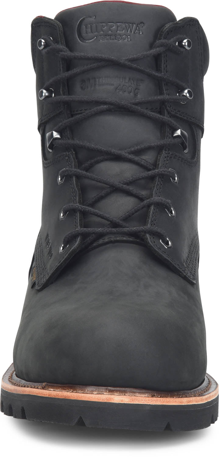 Chippewa Mens Super DNA 6in WP Steel Toe 400G Charcoal Black Leather Work Boots