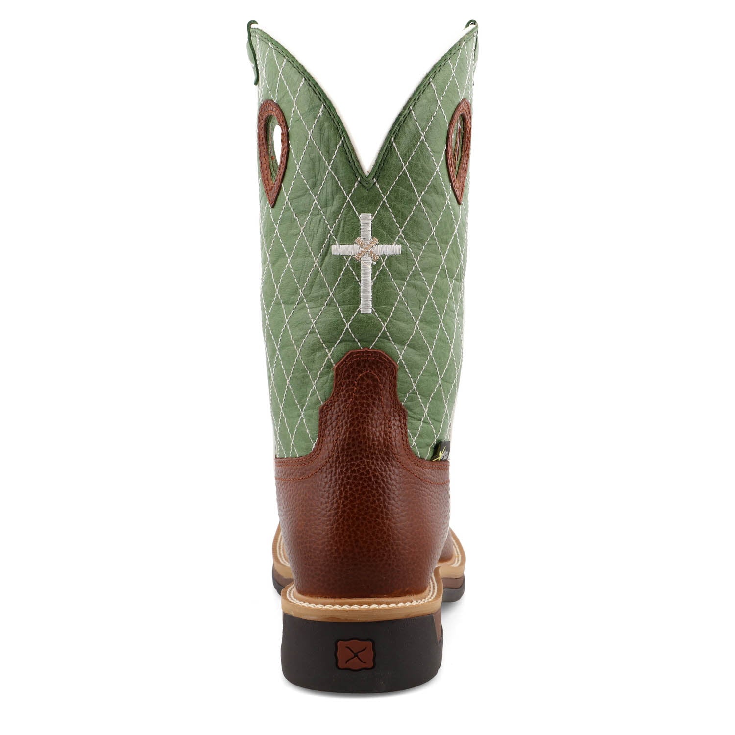 Twisted X Mens 12in Western ST MetGuard Cognac/Lime Leather Cross Work Boots