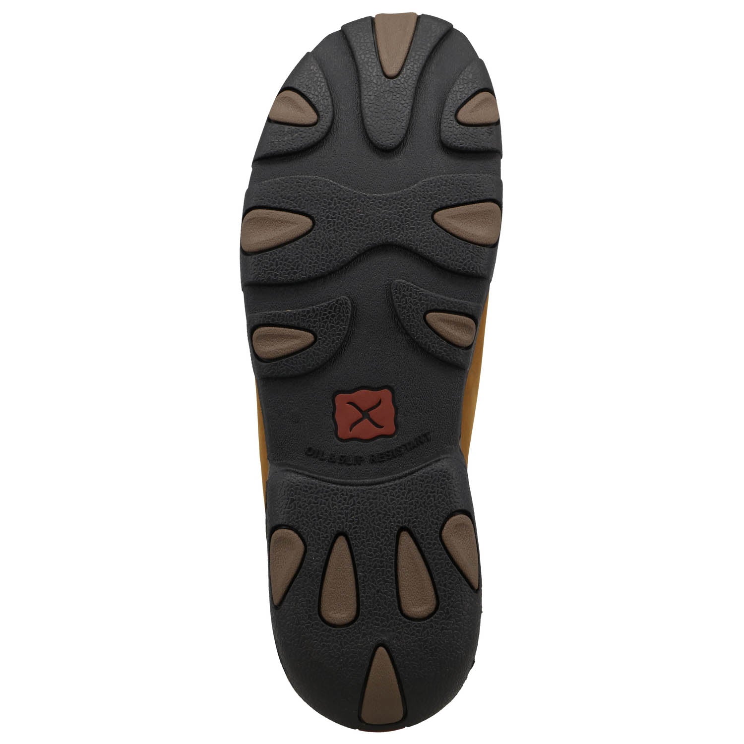 Always striving, never compromising. Twisted X is dedicated to making better boots and it shows. The Men's Nano Toe Electrostatic Dissipative Work Chukka Driving Moc is a true Twisted X Work original. Handcrafted in full-grain leather and a comfortable air-mesh lining. This Twisted X Work version of our popular driving moc design blends together a traditional open-laced chukka profile with a moc toe profile. Additionally, this boot features a Nano Composite Safety Toe made by weaving together carbon nanotubes to create one of the strongest and lightweight safety toe options available. The Twisted X CellSole comfort technology integrated into the footbed provides all day cushion and support. The Twisted X driving moc outsole is oil and slip resistant, as well as electrostatic dissipative to prevent a buildup of static electricity in the body. Twisted X Work footwear provides all the comfort, stability, and durability that you need. Work hard and stay protected with these work boots.