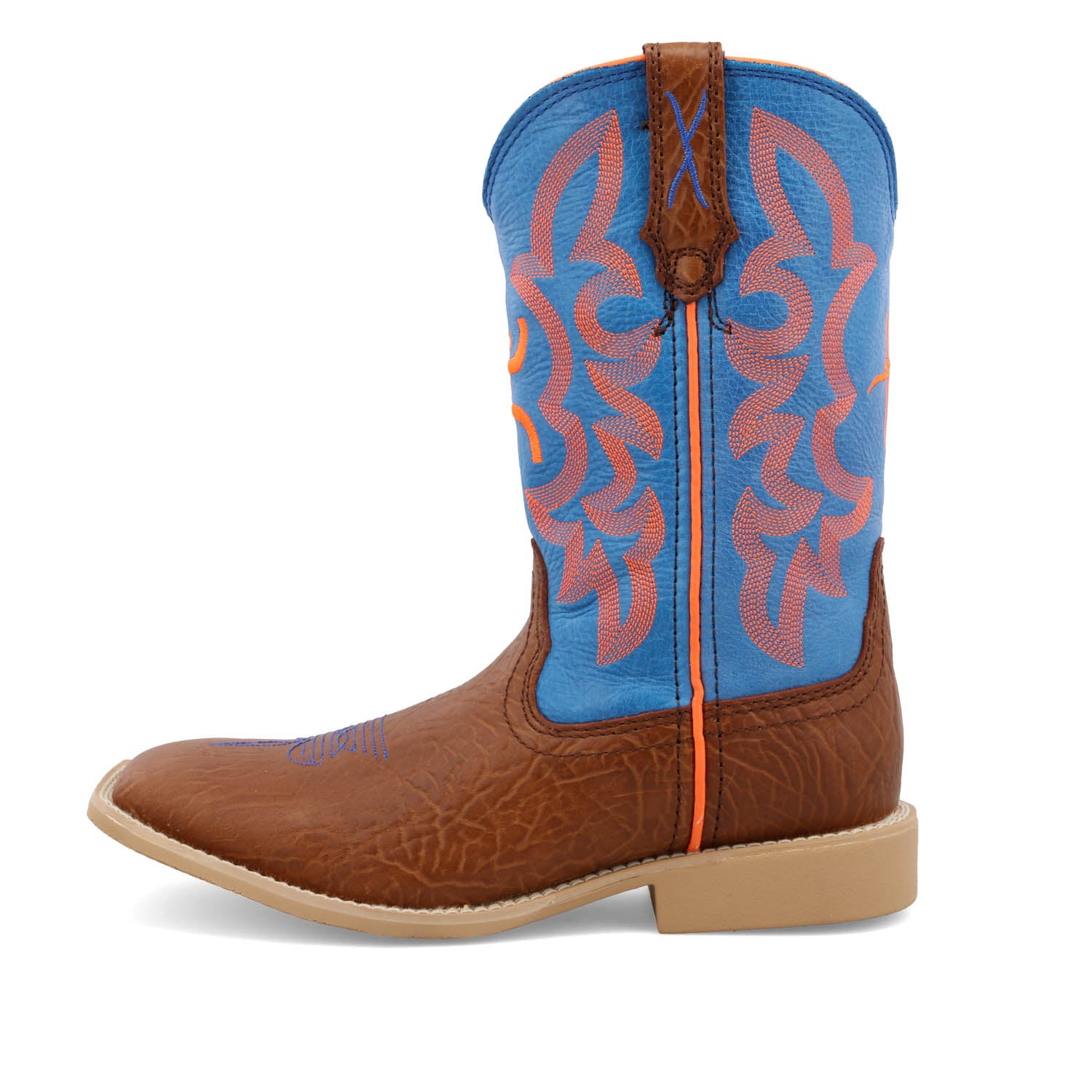 Twisted X Youth Unisex Hooey Cognac/Neon Blue Leather Cowboy Boots