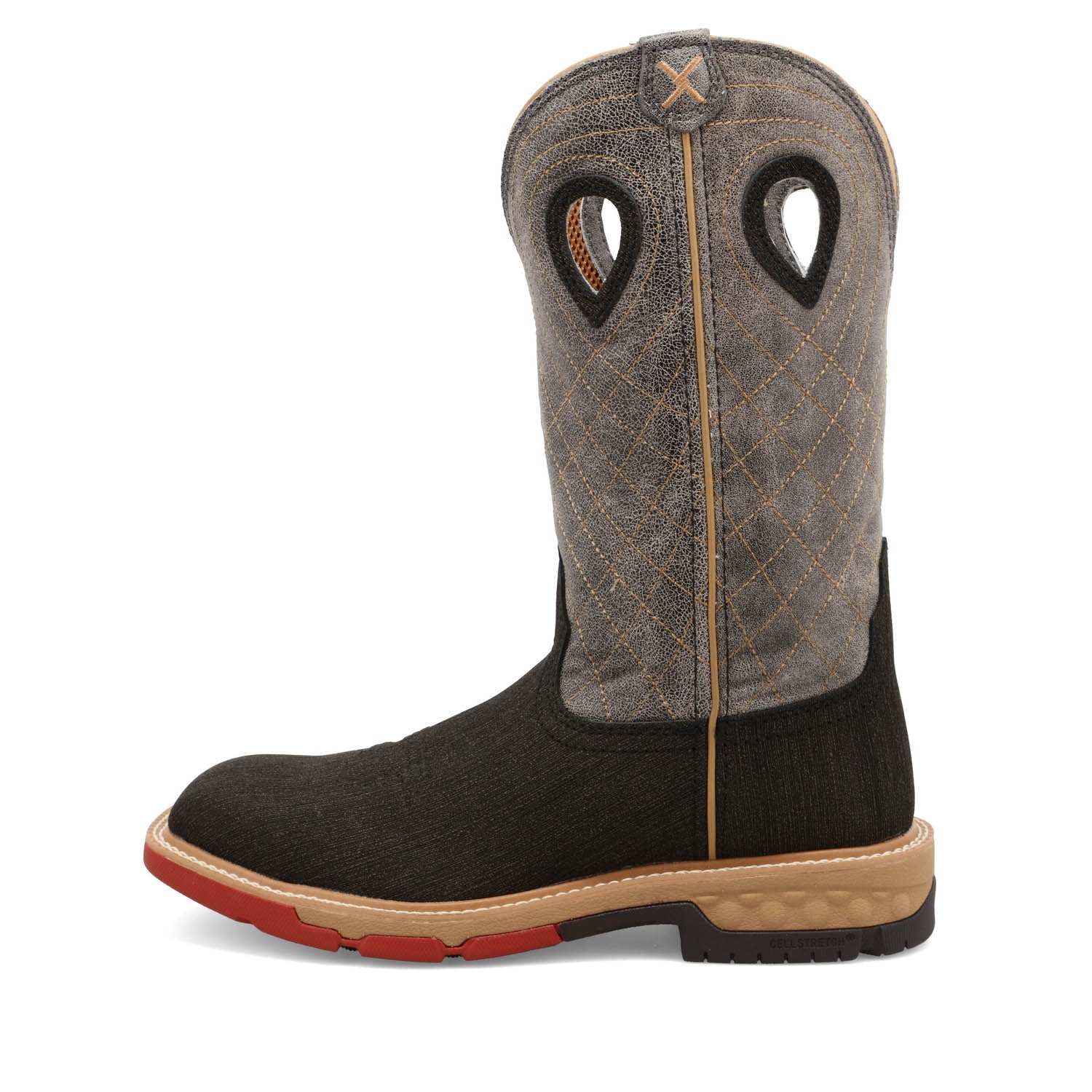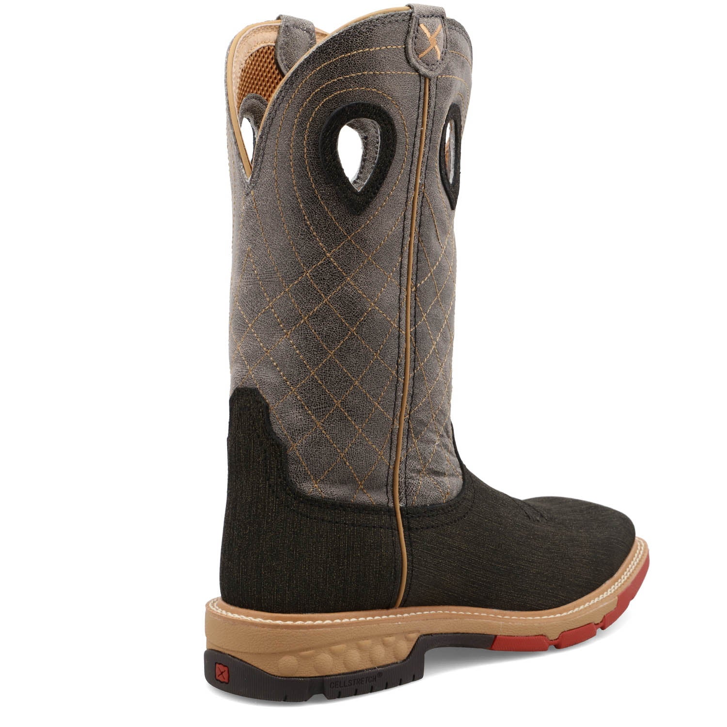 Always striving, never compromising. Twisted X is dedicated to making better boots and it shows. This Men's 12" Alloy Toe Western Work Boot with is handcrafted from duraTWX hybrid performance leather and a signature full-grain leather in traditional western profiles. These work boots are the first to feature Twisted X patent-pending CellStretch comfort technology, ensuring that every step you take is backed by superior comfort. In addition, this improved construction reduces the weight of previous Twisted X Western Work boot styles by 15%. Stability and durability are essential to a quality work boot and these boots deliver! They combine a compression-molded EVA midsole with integrated CellStretch tech and a nylon/glass fiber shank for proper support. The outsole design has also been enhanced to achieve higher slip ratings needed in the work industry. Twisted X Work footwear provides all the comfort, stability, and durability. Work hard and stay protected with these work boots.