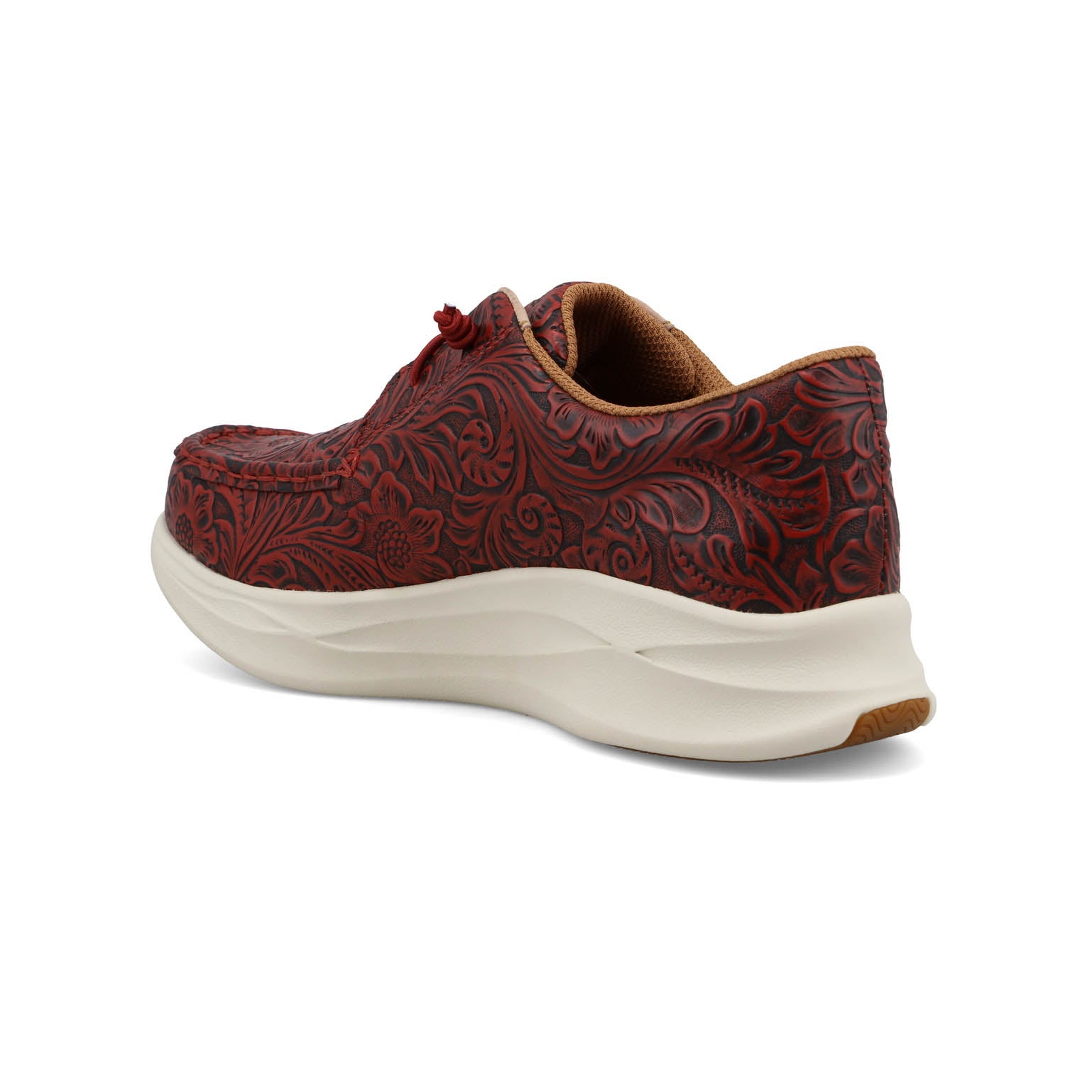 Always striving, never compromising. Twisted X is dedicated to making better boots and it shows. Delicate leather artistry meets casual everyday comfort. This pair of Feather X features a tooled floral design on premium leather complete with an elastic lace system allowing for easy slip-on and go. Infused with UltraLite X technology, this shoe is 20% lighter on average than similarly styled footwear, and eco-friendly materials throughout leave a lighter environmental impact. Feather X is perfect for anyone seeking easy-wearing comfort with a little western flair. These are a great athletic footwear choice.