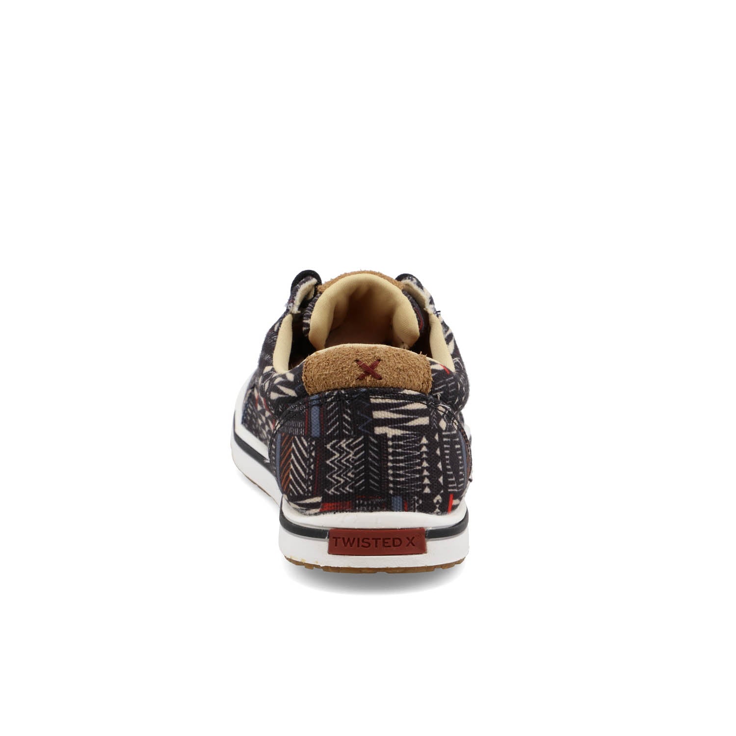 Always striving, never compromising. Twisted X is dedicated to making better boots and it shows. The Women's Kicks collection is a Twisted X take on classic profiles with style you've come to love. These shoes utilize unique materials, exciting patterns, and powerful pops of color, all while blending style, quality, and unrivaled comfort. These Kicks feature an ecoTWEED lining, removable Blend85 upcycled footbed, and a molded rubber outsole integrated with eco-friendly rice husk, a repurposed agricultural by-product. These Kicks are a perfect balance of style and comfort that is sure to stand out in a crowd. These are a great athletic footwear choice.