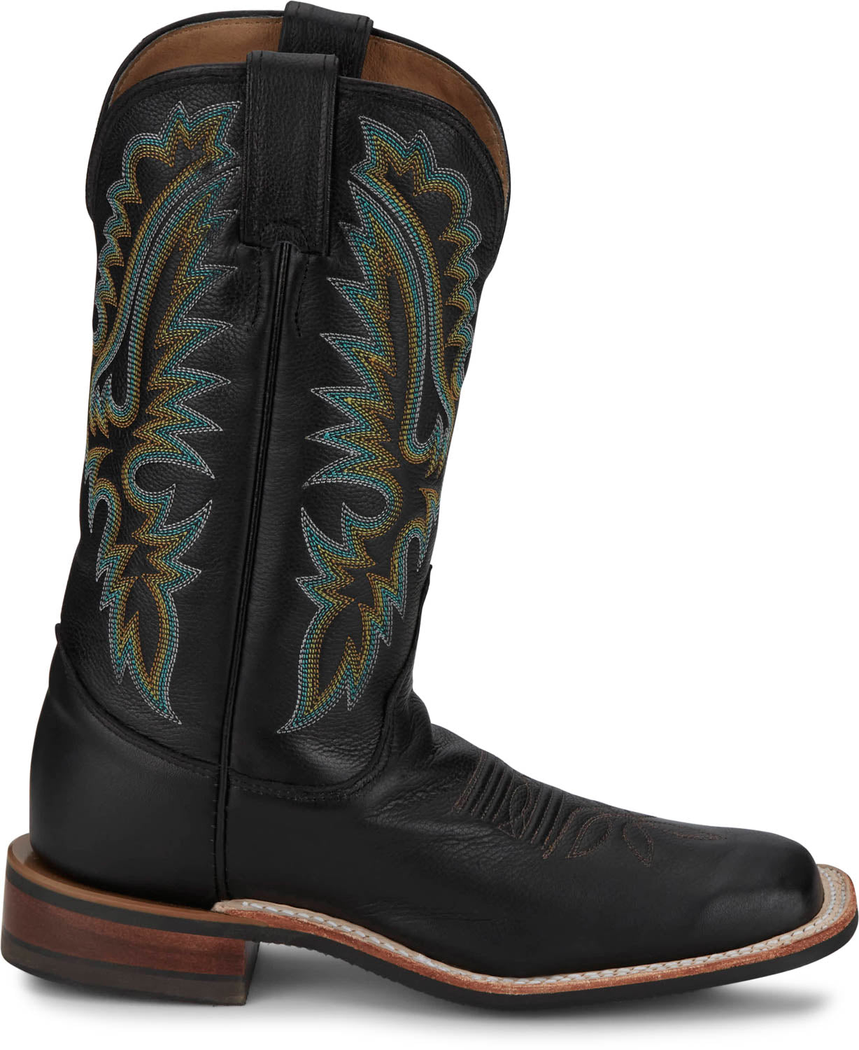 Justin Womens Shay 11in Western Black Leather Bent Rail Cowboy Boots