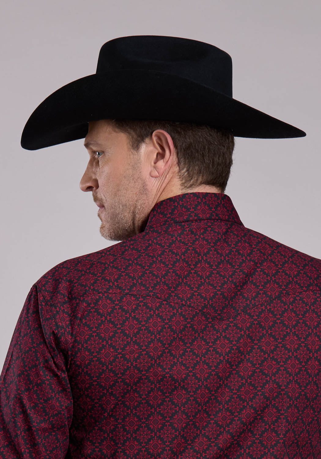 Roper Mens Garnet Medallion Wine 100% Cotton L/S Shirt