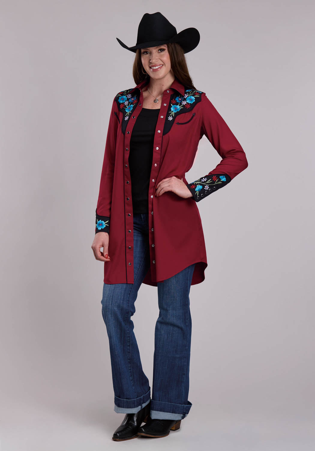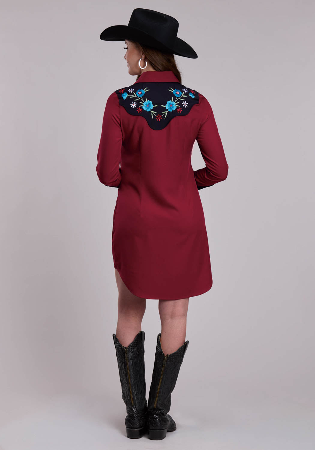 Roper Womens Retro Flower Red Poly/Spandex L/S Dress
