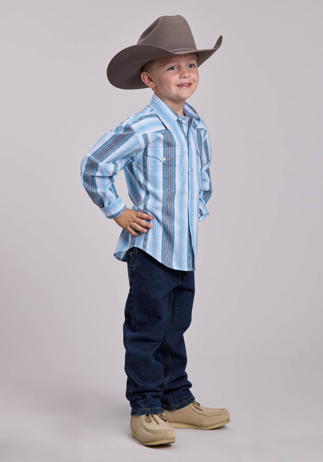 Roper Kids Boys 2832 Yarn Dye Stripe Blue 100% Cotton L/S Shirt