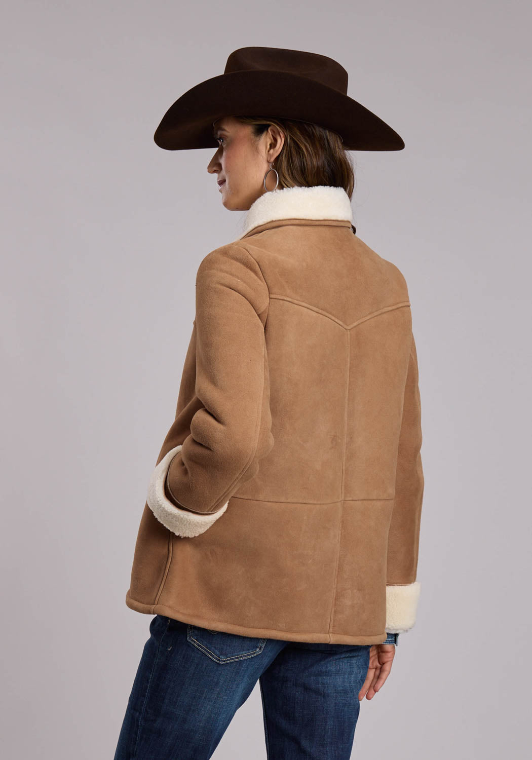 Stetson Womens Barn Coat Beige Shearling Leather Jacket